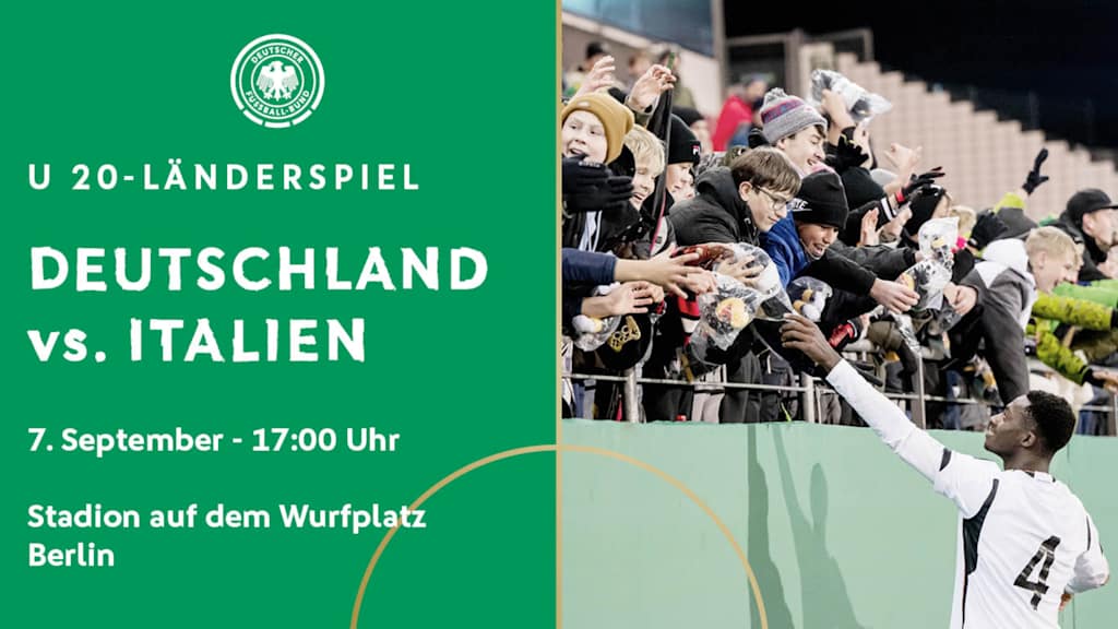 Die Saison 2023/2024 startet für die deutsche U 20-Nationalmannschaft mit einem Länderspielkracher: Am Donnerstag (ab 17 Uhr) trifft das Team von DFB-Trainer Hannes Wolf, der jüngst auch zum DFB-Direktor Nachwuchs, Training und Entwicklung berufen worden ist, im Stadion auf dem Wurfplatz in Berlin auf Italien. Eintrittskarten sind nun im DFB-Ticketportal erhältlich.