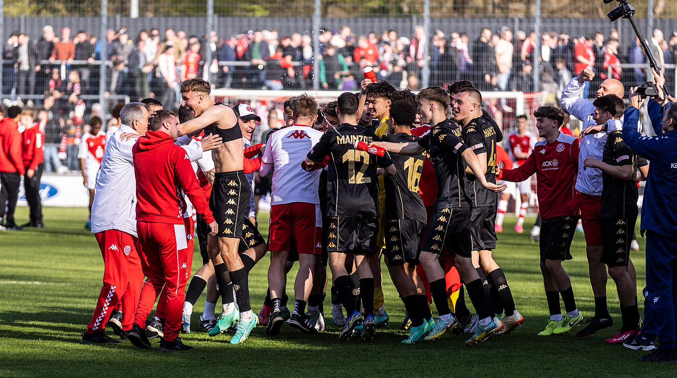 Der 1. FSV Mainz 05 könnte sich dagegen erstmals seit dem Titelgewinn 2009 (damals unter der Regie von Trainer Thomas Tuchel und mit Weltmeister André Schürrle im Team) wieder die nationale U 19-Krone sichern. Am Sonntag, 23. April (ab 11 Uhr, live bei Sky) empfangen die Rheinhessen den Gewinner des zweiten Halbfinales zwischen Borussia Dortmund und Hertha BSC (Hinspiel 4:0) in der großen MEWA ARENA.