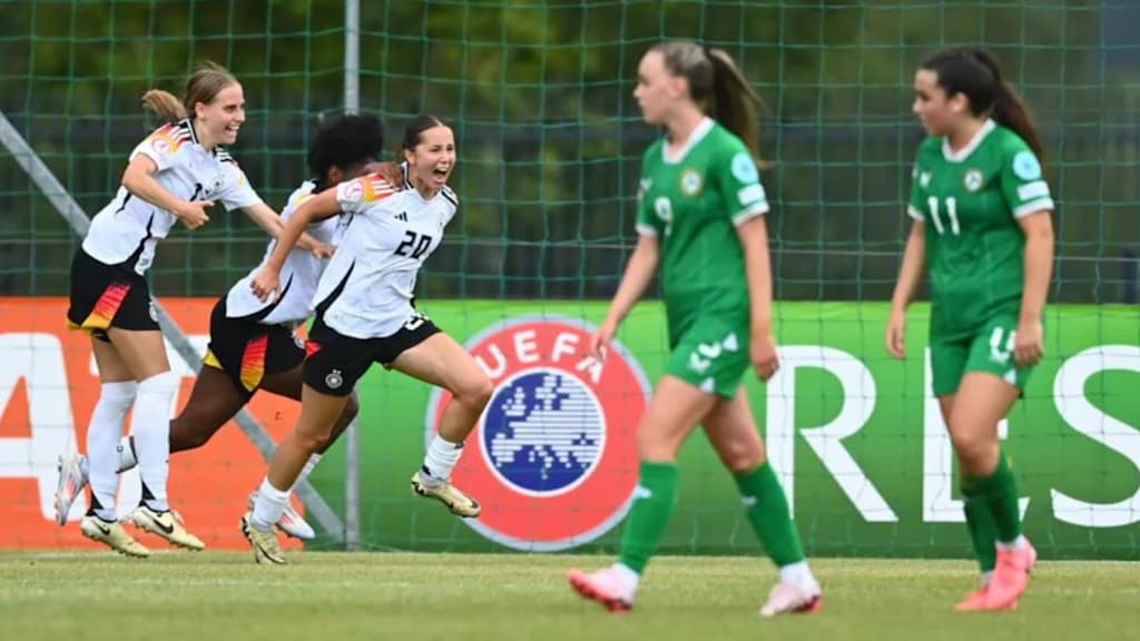 Die deutschen U 19-Frauen haben den ersten Sieg bei der Europameisterschaft in Litauen eingefahren. In einem umkämpften Spiel schlug das Team von Cheftrainer Michael Urbansky in Jonava Irland mit 2:1 (0:1). Nach Rückstand zur Pause konnten die Joker Leonie Schetter (71.) und Laila Portella (77.) die Partie zu Gunsten der DFB-Auswahl drehen.