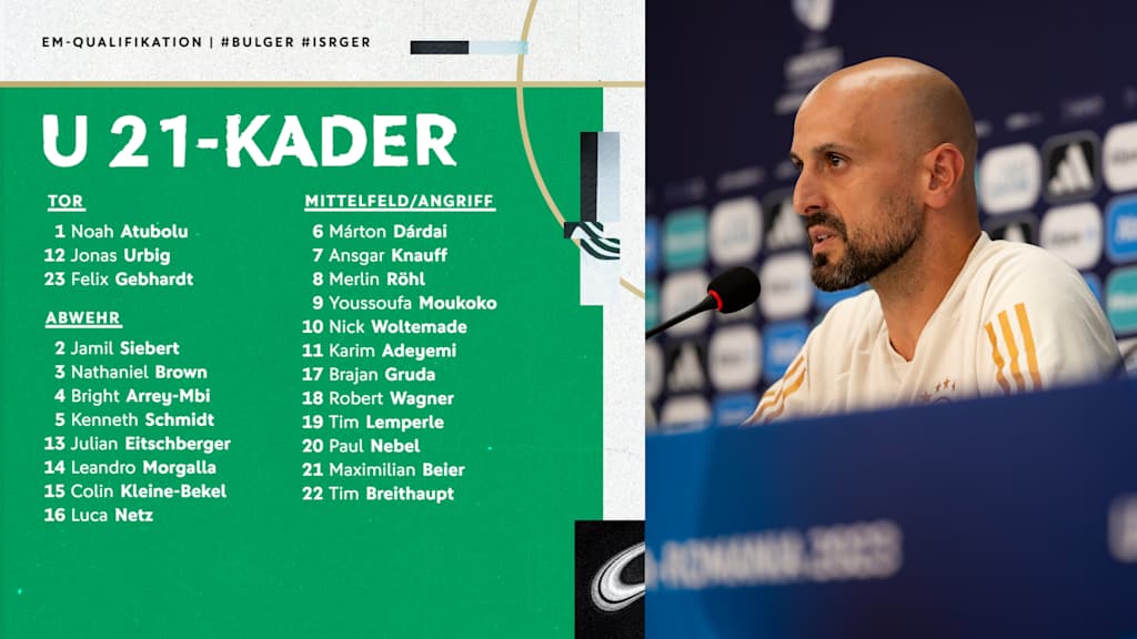 "Nach den Auftaktsiegen wollen wir mit der Mannschaft weiter an unseren Fokusthemen Zweikampfverhalten, defensive Stabilität und Konsequenz – vor dem eigenen und dem gegnerischen Tor – arbeiten", sagt Di Salvo. Mit Blick auf die beiden Duelle erklärt der DFB-Trainer: "Uns erwarten zwei schwere Partien. Bulgarien ist mit vier Punkten aus zwei Spielen hervorragend in die EM-Qualifikation gestartet. Israel ist mit diesem Jahrgang amtierender Vizeeuropameister. Wir benötigen in beiden Spielen Topleistungen." Di Salvo und sein Team kommen am nächsten Montag in Frankfurt am Main zusammen, ehe sie am kommenden Mittwoch in Richtung Sofia aufbrechen.