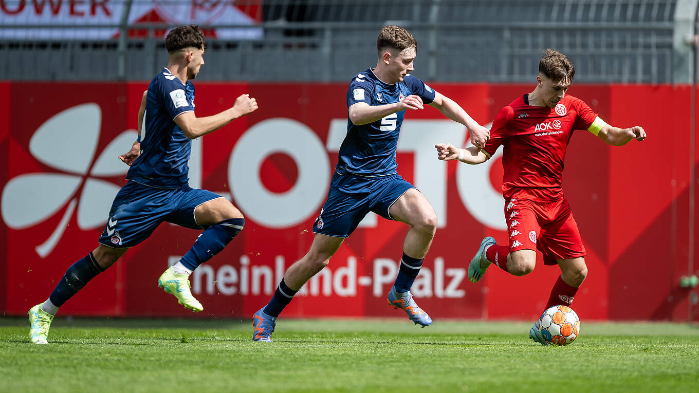 Keine 24 Stunden nach seinem Tor als "Joker" für die Mainzer Profis im Spiel gegen den SV Werder Bremen (2:2) sorgte U 18-Nationalspieler Nelson Weiper (13.) für den einzigen Treffer der Begegnung. Das Rückspiel findet am kommenden Freitag, 14. April (ab 16 Uhr, live bei Sky) im Kölner Franz-Kremer-Stadion am Geißbockheim statt.