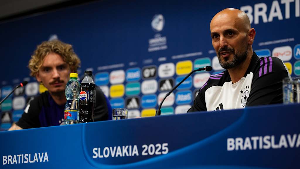 Ein Tag trennt die deutsche U 21-Nationalmannschaft noch vom Highlightspiel. Am Samstag (ab 21 Uhr, live in SAT.1, auf Joyn und ran.de) geht es bei der EM in der Slowakei im Finale gegen England um den vierten Titelgewinn. Cheftrainer Antonio Di Salvo und Topscorer Nick Woltemade haben über das Endspiel gesprochen.