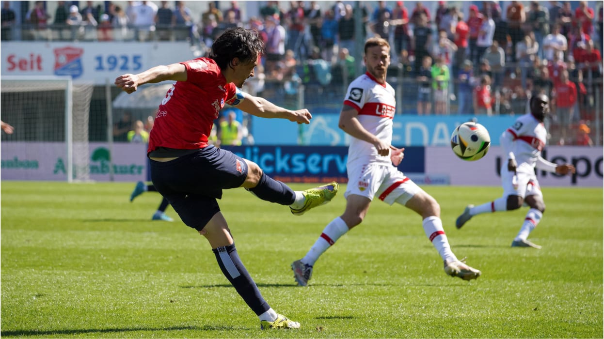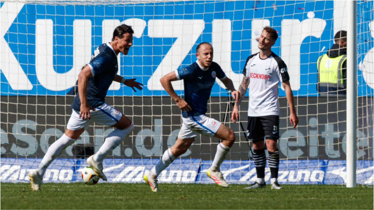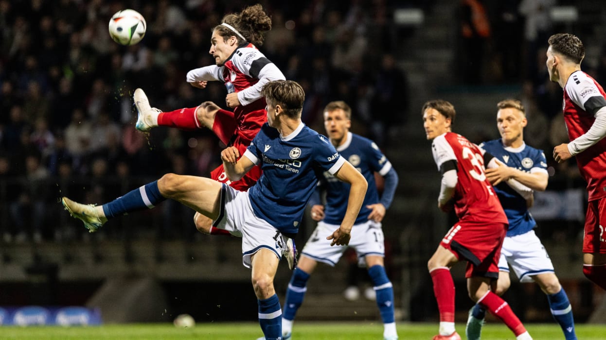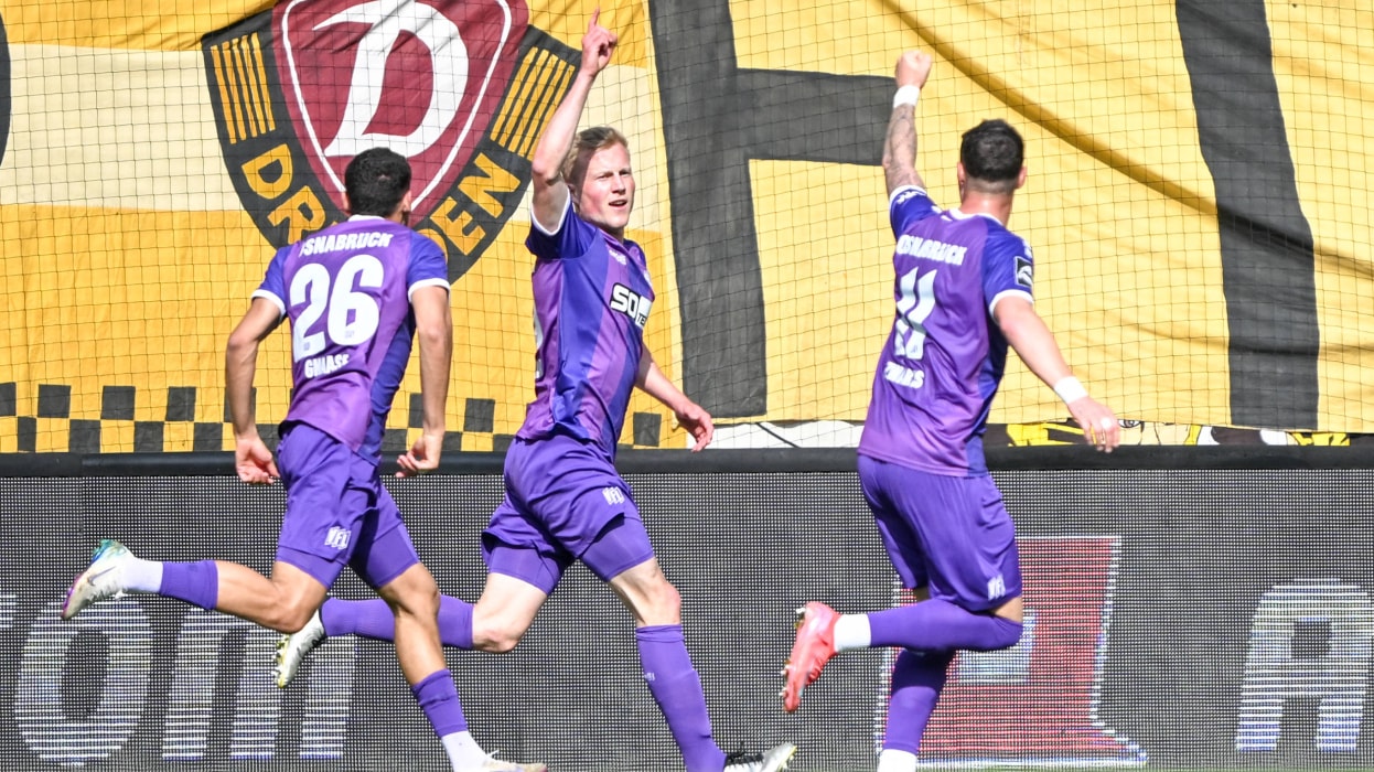 In der 3. Liga rückt Arminia Bielefeld immer näher an Spitzenreiter Dynamo Dresden heran. Die Ostwestfalen liegen dank eines 2:0 (1:0)-Auswärtssieges bei Viktoria Köln nur noch einen Zähler hinter den Nerven zeigenden Dresdnern (0:1 gegen Osnabrück). Die Reserve von Borussia Dortmund klettert weiter die Tabellenleiter empor auf den zwölften Platz und lässt Energie Cottbus durch ein 4:1 (3:0) auf Rang vier fallen. Nutznießer Saarbrücken (1:1 gegen Wehen Wiesbaden) schiebt sich somit auf den Relegationsplatz. Waldhof Mannheim hingegen hält sich nach einem 0:3 (0:1) gegen 1860 München nur noch dank des besseren Torverhältnisses oberhalb der Stuttgarter Zweitvertretung (2:2 in Unterhaching) und der Abstiegszone. DFB.de hat die Bilder des 33. Spieltags.