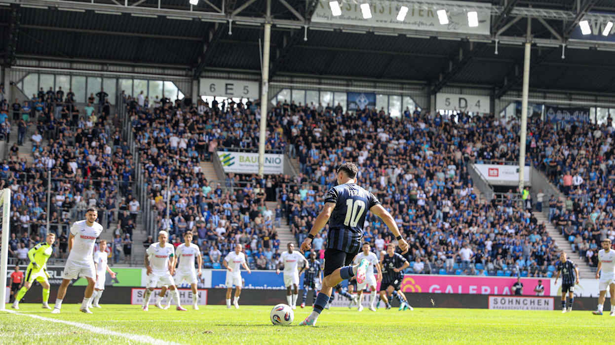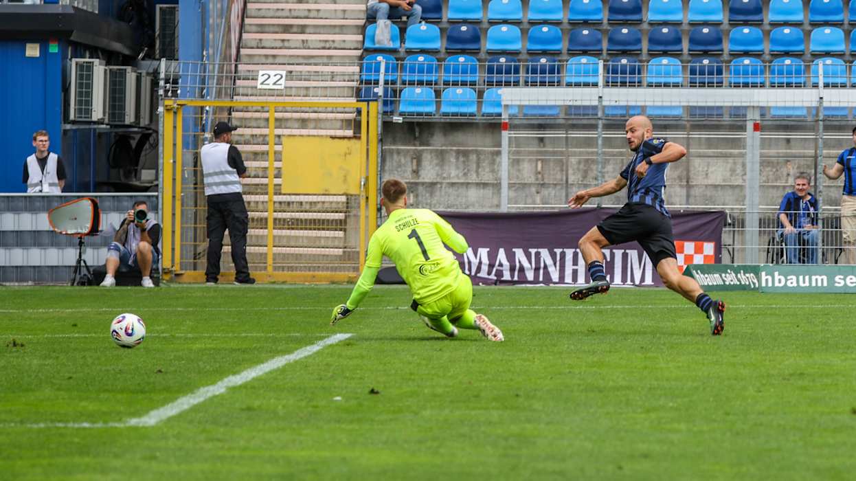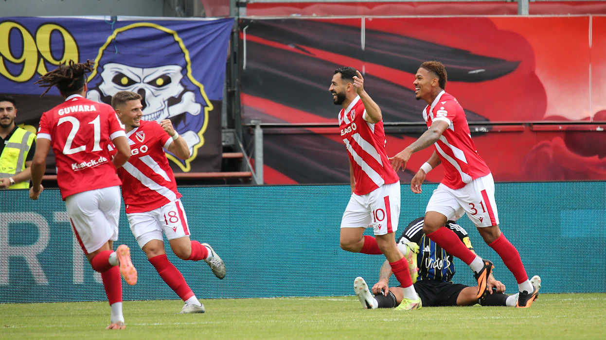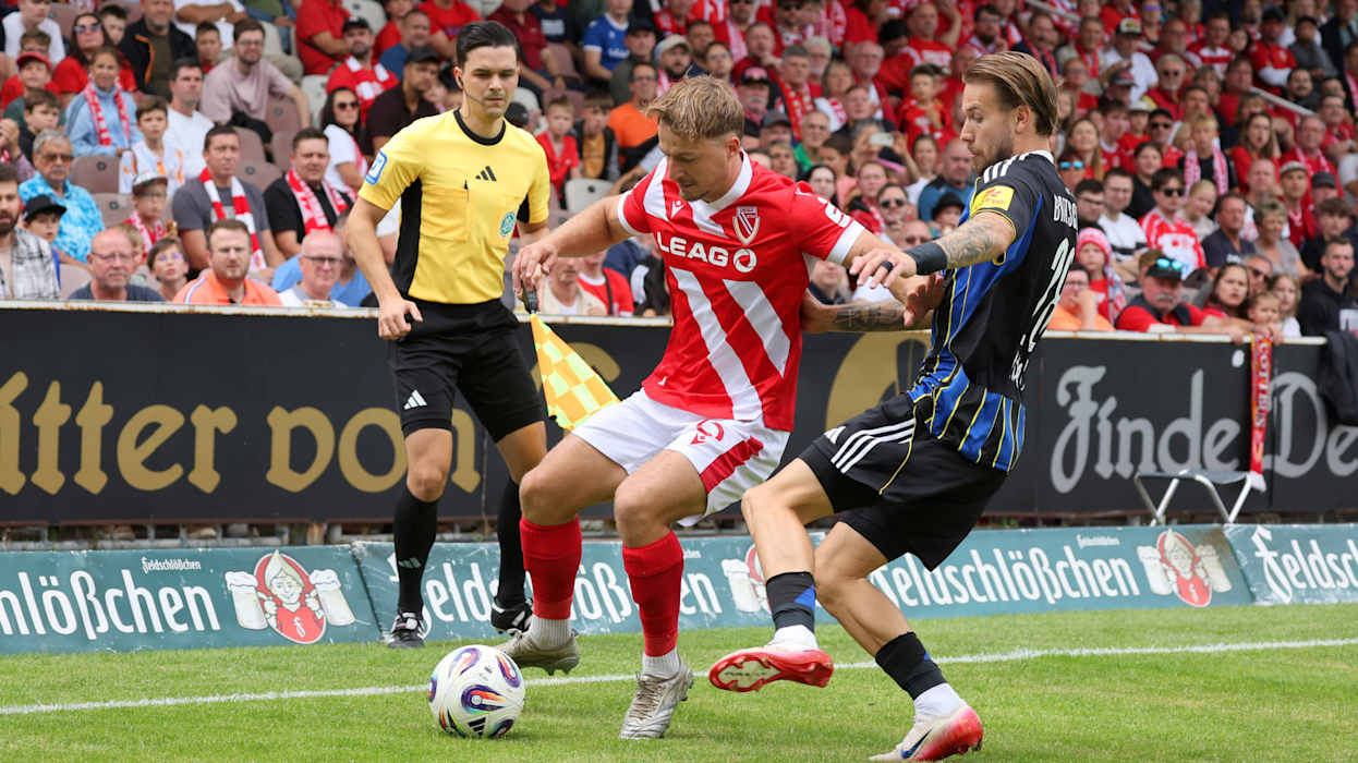 Doch der Saisonauftakt stand vor allem im Zeichen der Punkteteilung, gleich sieben Partien endeten ohne Sieger - drei davon torlos. Rot-Weiss Essen und 1860 München trennten sich im Eröffnungsspiel am Freitag 1:1. Energie Cottbus und der 1. FC Saarbrücken starteten mit einem 3:3-Torspektakel in die neue Saison. Waldhof Mannheim und der SC Verl trafen in ihrem Duell jeweils zweimal (2:2). DFB.de hat die besten Bilder des 1. Spieltags.