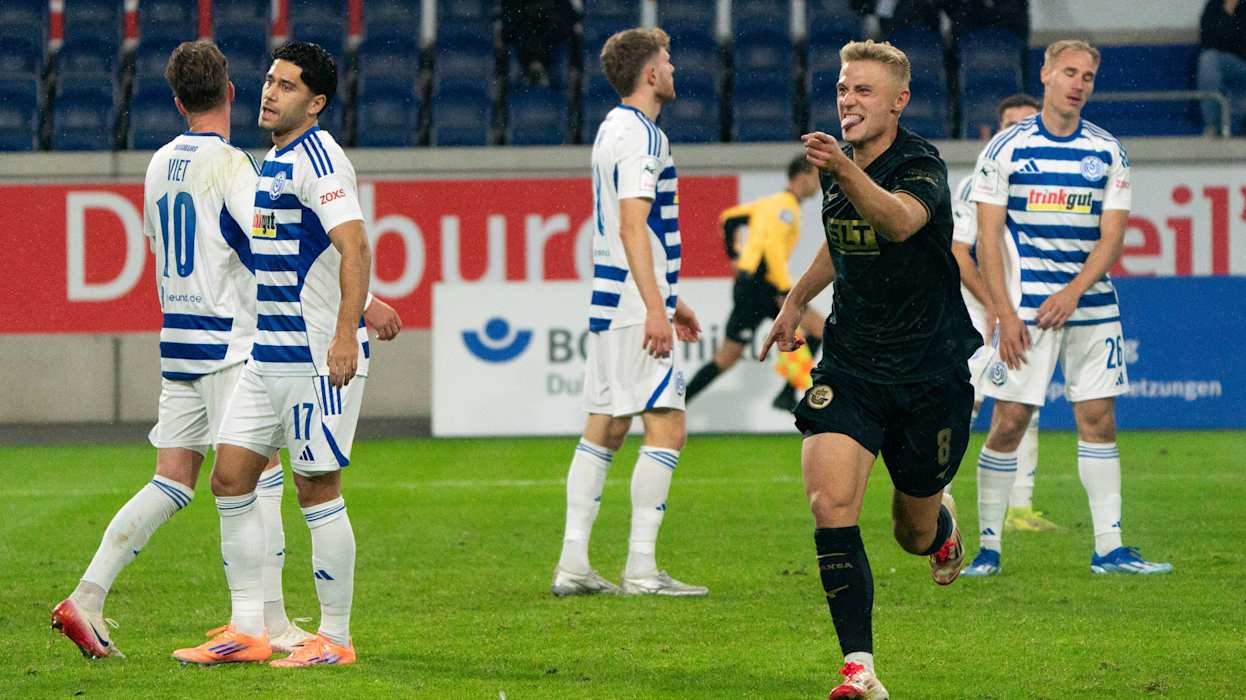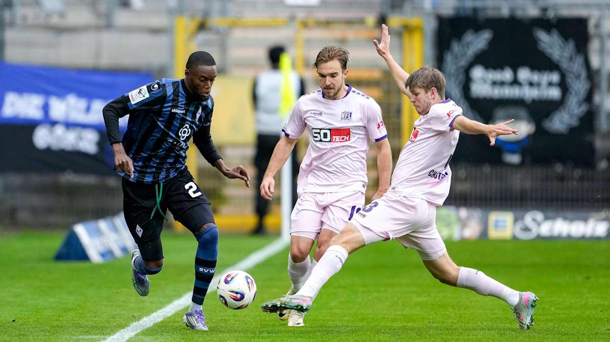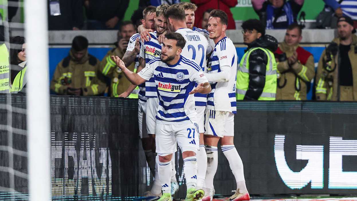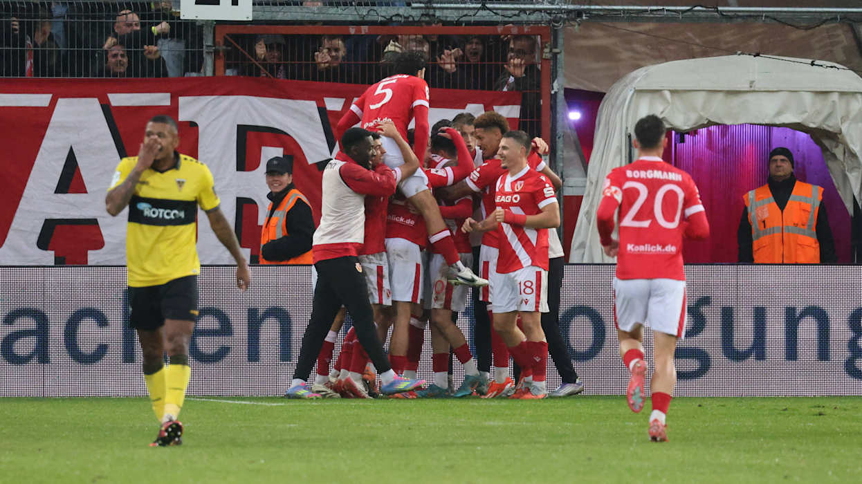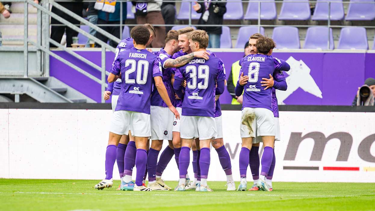 Der 10. Spieltag in der 3. Liga ist vorbei und Tabellenführer MSV Duisburg ist weiterhin ungeschlagen. Allerdings mussten die Zebras beim 2:2 (1:1) gegen Hansa Rostock erneut Punkte abgeben. Mit einem 3:2 (1:2) gegen Alemannia Aachen konnte sich Energie Cottbus auf Tabellenplatz zwei vorschieben, auf dem Relegationsplatz rangiert durch einen 4:1-Auswärtssieg in Mannheim der VfL Osnabrück. Punktgleich dahinter steht der 1. FC Saarbrücken, der beim 1:1 (0:1) in Regensburg das dritte Unentschieden in Serie hinnehmen musste. Im weiteren Verfolgerfeld sind Viktoria Köln (4:1 gegen Havelse), Wehen Wiesbaden (1:0 gegen 1860 München), Rot-Weiss Essen (2:2 in Aue) und der SC Verl (2:1 in Schweinfurt). Im Tabellenkeller konnte der FC Ingolstadt mit einem 4:1 (1:1) gegen Zweitligaabsteiger SSV Ulm einen wichtigen Befreiungsschlag landen. DFB.de zeigt die besten Bilder des Spieltags in einer Galerie.