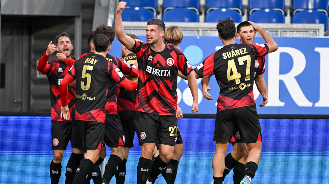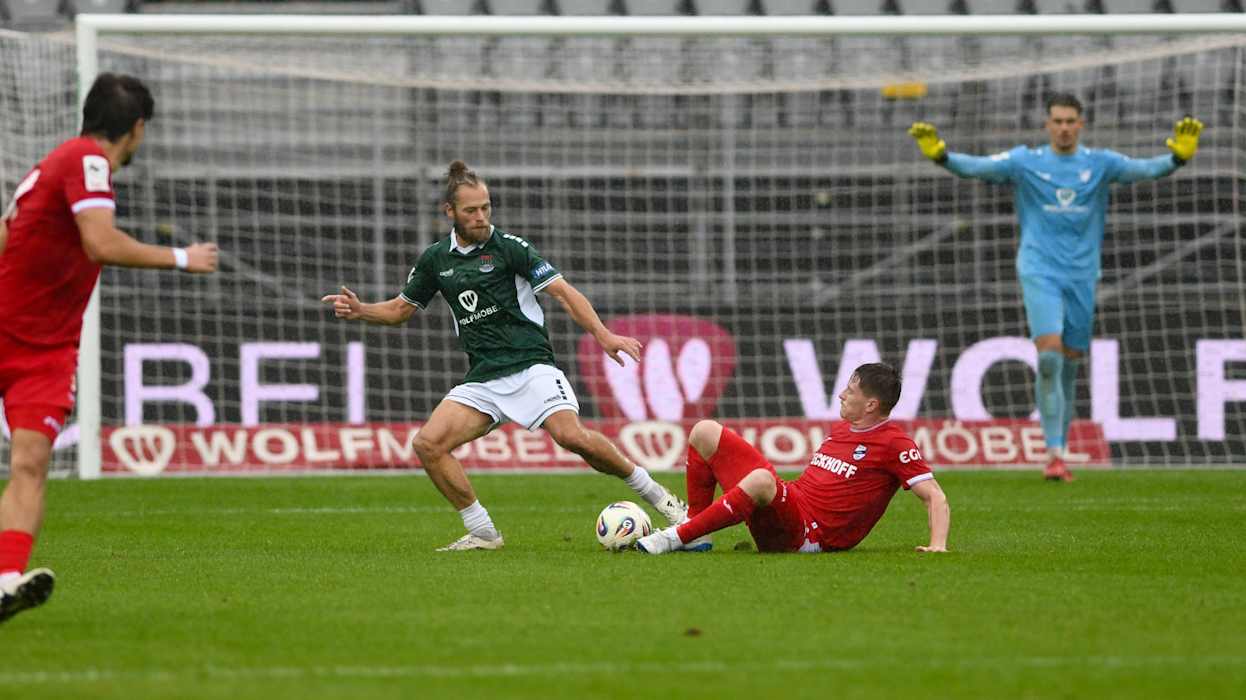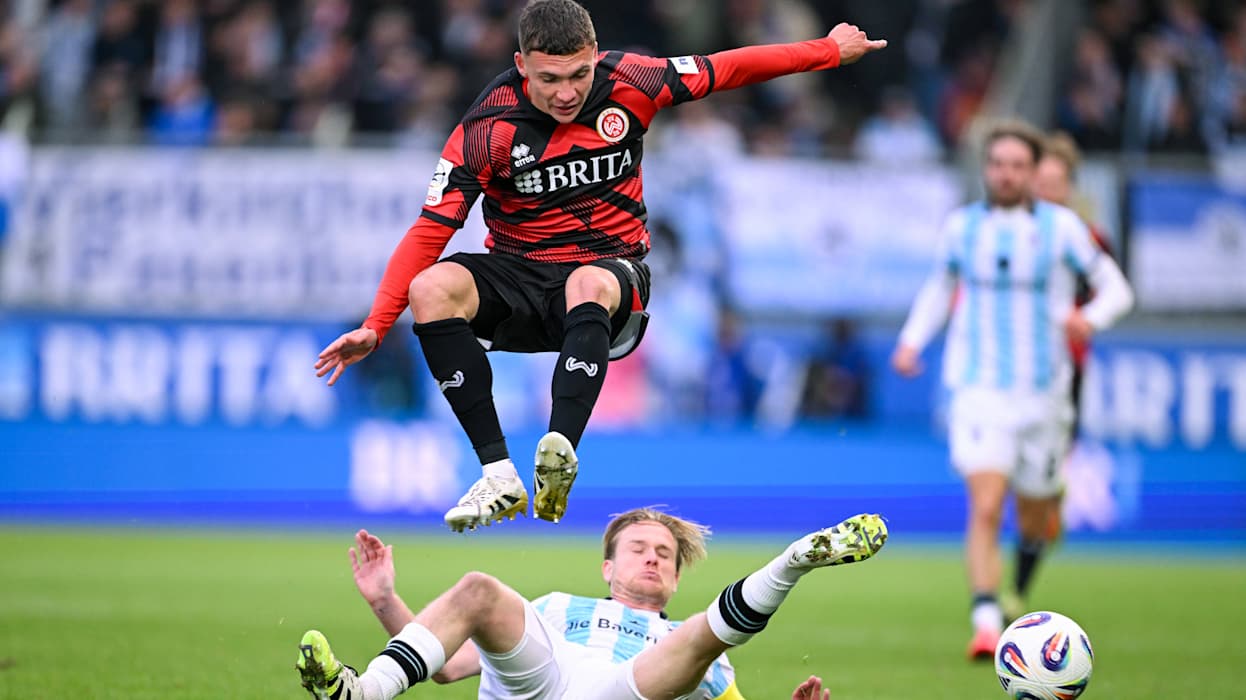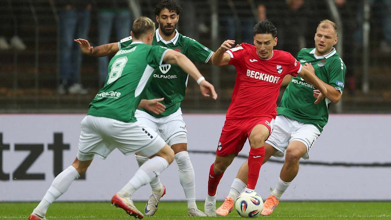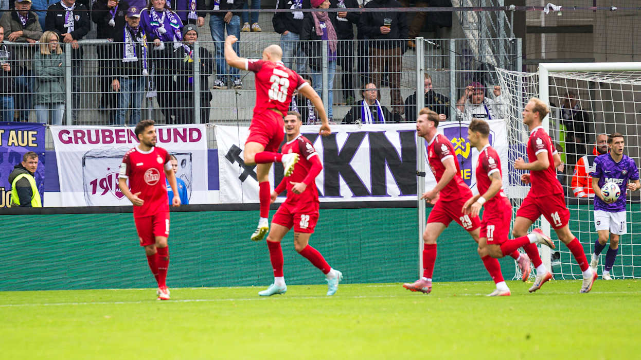 Der 10. Spieltag in der 3. Liga ist vorbei und Tabellenführer MSV Duisburg ist weiterhin ungeschlagen. Allerdings mussten die Zebras beim 2:2 (1:1) gegen Hansa Rostock erneut Punkte abgeben. Mit einem 3:2 (1:2) gegen Alemannia Aachen konnte sich Energie Cottbus auf Tabellenplatz zwei vorschieben, auf dem Relegationsplatz rangiert durch einen 4:1-Auswärtssieg in Mannheim der VfL Osnabrück. Punktgleich dahinter steht der 1. FC Saarbrücken, der beim 1:1 (0:1) in Regensburg das dritte Unentschieden in Serie hinnehmen musste. Im weiteren Verfolgerfeld sind Viktoria Köln (4:1 gegen Havelse), Wehen Wiesbaden (1:0 gegen 1860 München), Rot-Weiss Essen (2:2 in Aue) und der SC Verl (2:1 in Schweinfurt). Im Tabellenkeller konnte der FC Ingolstadt mit einem 4:1 (1:1) gegen Zweitligaabsteiger SSV Ulm einen wichtigen Befreiungsschlag landen. DFB.de zeigt die besten Bilder des Spieltags in einer Galerie.