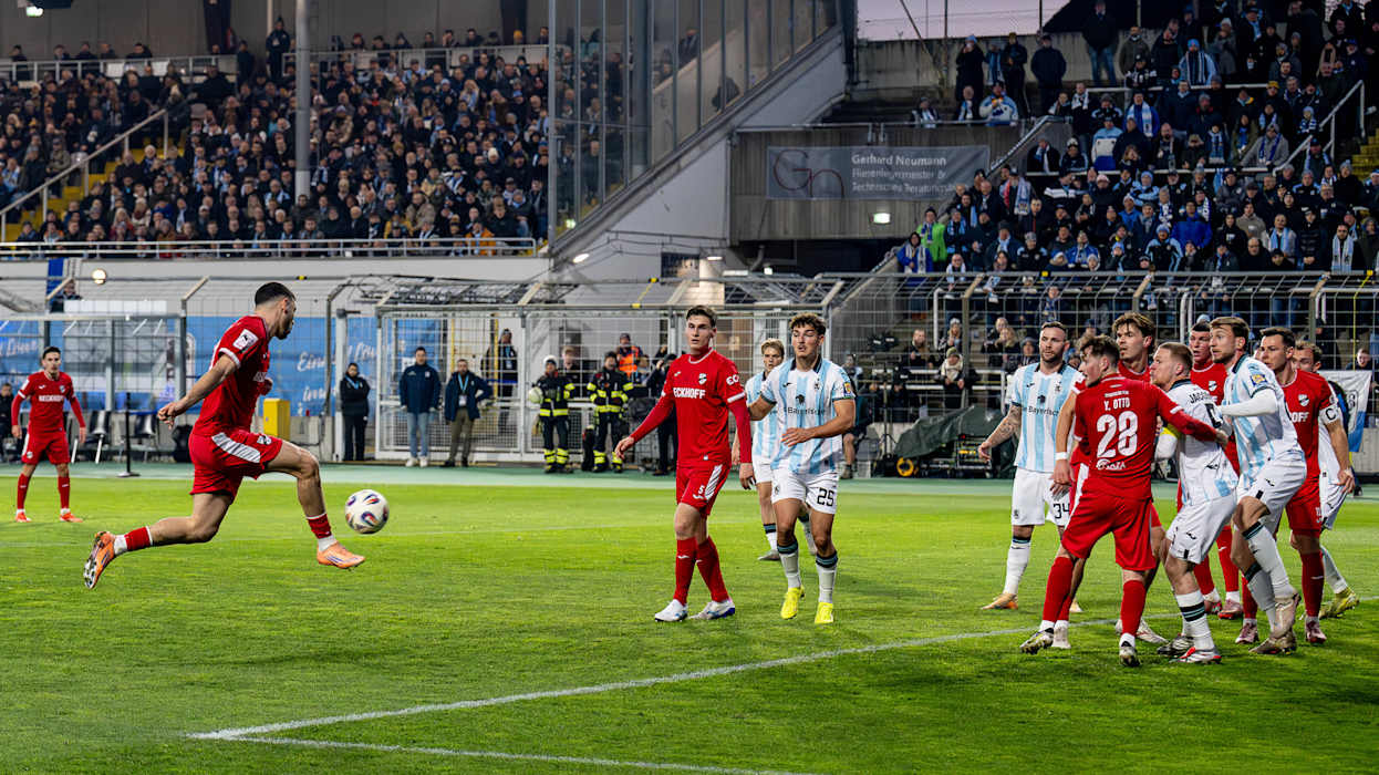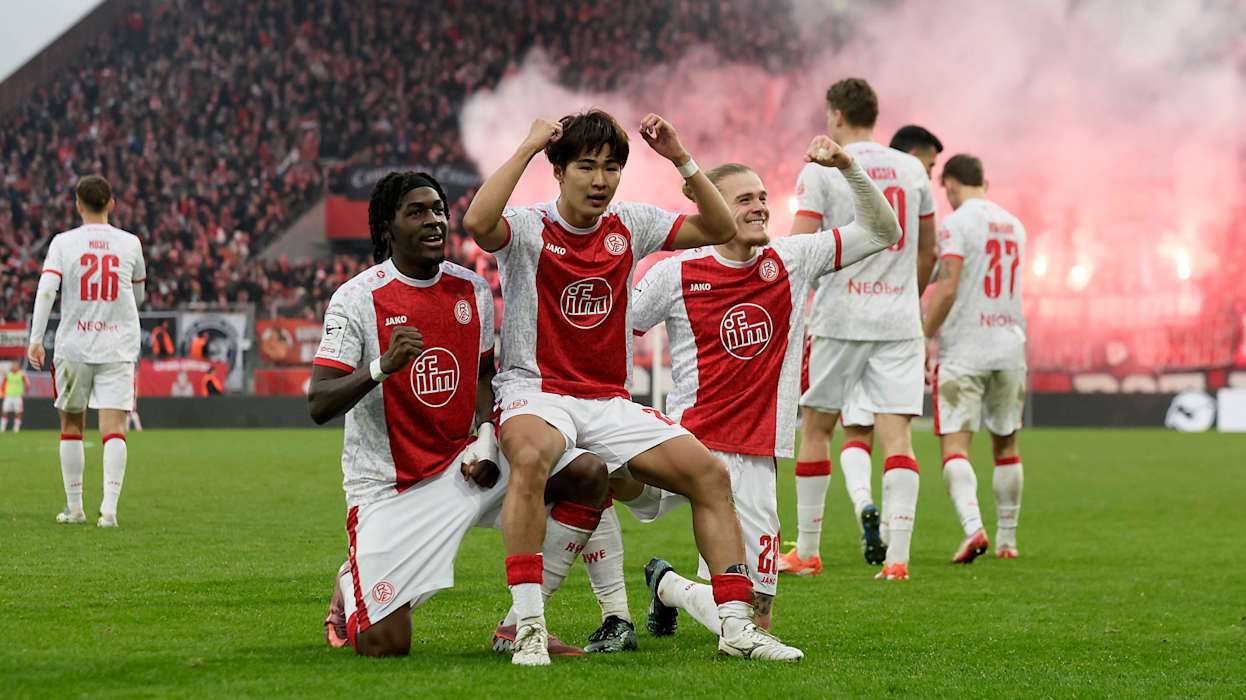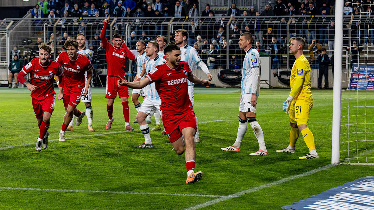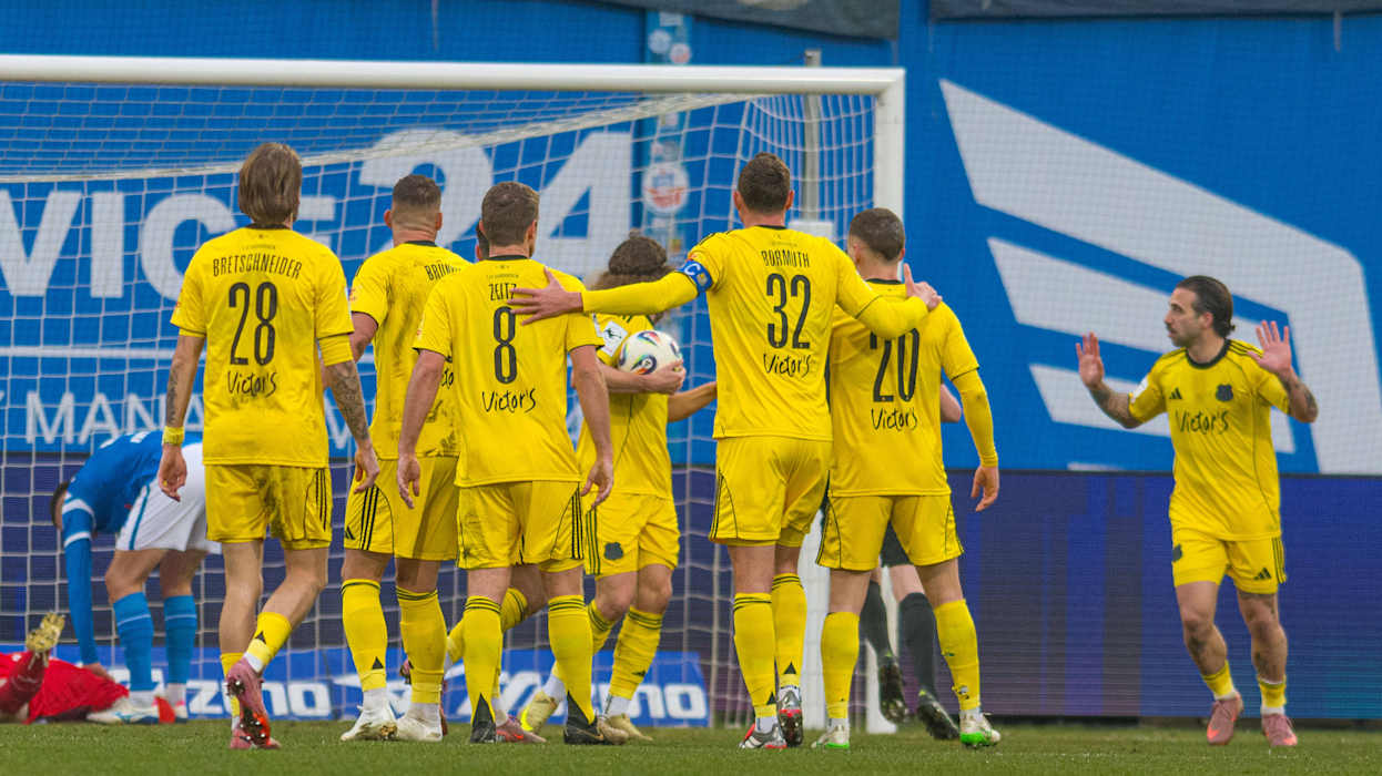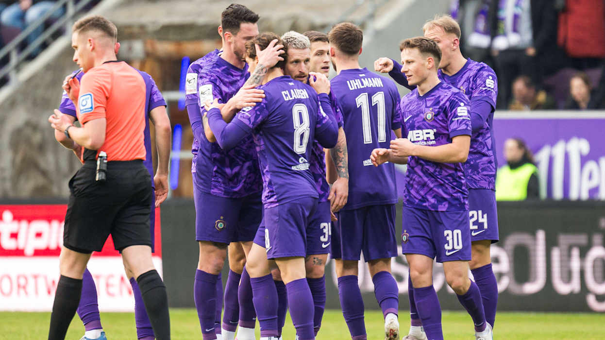 Der MSV Duisburg fiel durch das 0:0 bei Viktoria Köln auf den Relegationsplatz zurück. Auch Hansa Rostock (1:1 gegen den 1. FC Saarbrücken) und der VfL Osnabrück (1:2 gegen den VfB Stuttgart II) mussten von der Spitzengruppe abreißen lassen. Am Tabellenende freute sich Erzgebirge Aue, das mit dem 4:0 (2:0) gegen Schlusslicht 1. FC Schweinfurt die Abstiegsränge verlassen konnte. Dort rangieren über den Jahreswechsel derweil der TSV Havelse und Alemannia Aachen, die sich beim 1:1 (0:0) ohne Sieger trennten. DFB.de hat die besten Bilder des Spieltags.