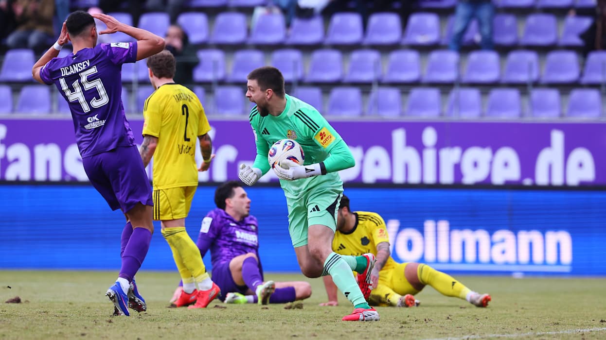 Im Tabellenkeller verspielt Alemannia Aachen beim 3:3 (2:1) gegen Rot-Weiss Essen trotz Zwei-Tore-Führung spät den Heimdreier. Auch der FC Erzgebirge Aue und der 1. FC Saarbrücken treten nach dem 0:0 im direkten Duell im Abstiegskampf auf der Stelle. DFB.de hat die besten Bilder des 23. Spieltags.