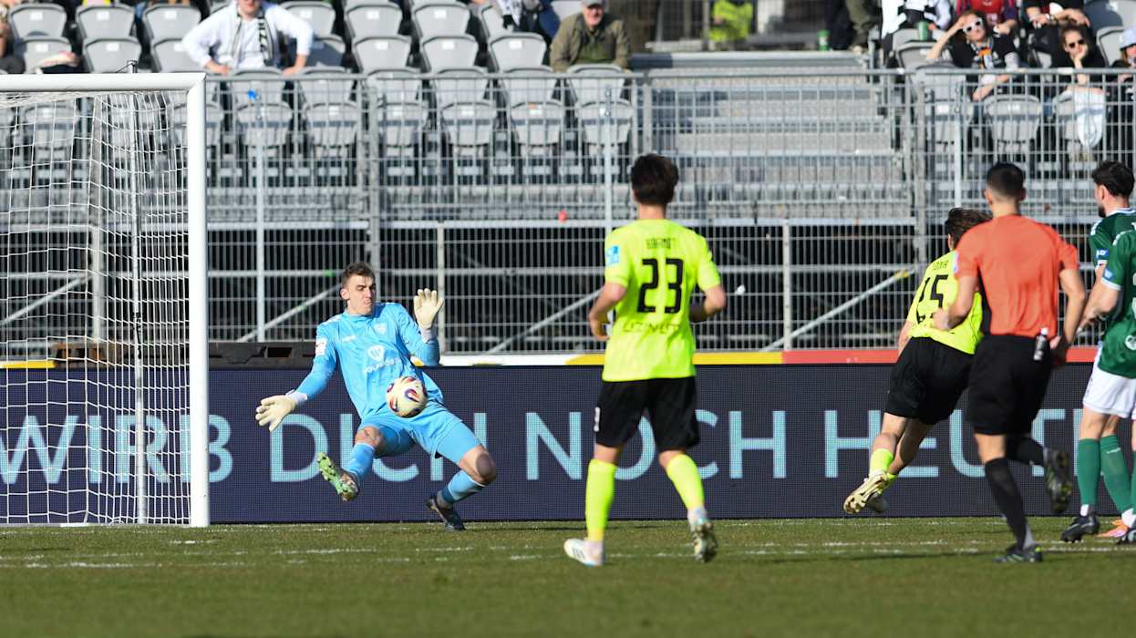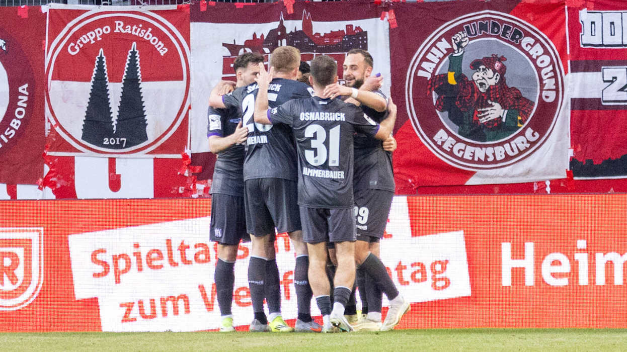 Der VfL Osnabrück hat am 28. Spieltag der 3. Liga seine Tabellenführung durch ein 2:0 (1:0) beim SSV Jahn Regensburg verteidigt. Der Vorsprung auf den ärgsten Verfolger FC Energie Cottbus beträgt nach dessen 0:0 im Spitzenspiel gegen den FC Hansa Rostock nun zwei Punkte. Auf dem Relegationsplatz bleibt der MSV Duisburg durch seinen 4:2 (1:1)-Heimerfolg gegen den 1. FC Saarbrücken. Die Konkurrenz im Aufstiegsrennen bleibt allerdings zahlreich: Zwischen Platz drei und Rang acht liegen lediglich vier Zähler. Der FC Erzgebirge Aue (1:3 gegen Alemannia Aachen) und der SSV Ulm 1846 Fußball (2:3 bei Schlusslicht 1. FC Schweinfurt 05) haben weiterhin acht Punkte Rückstand auf die Nichtabstiegsplätze. DFB.de hat die besten Bilder der 28. Runde.