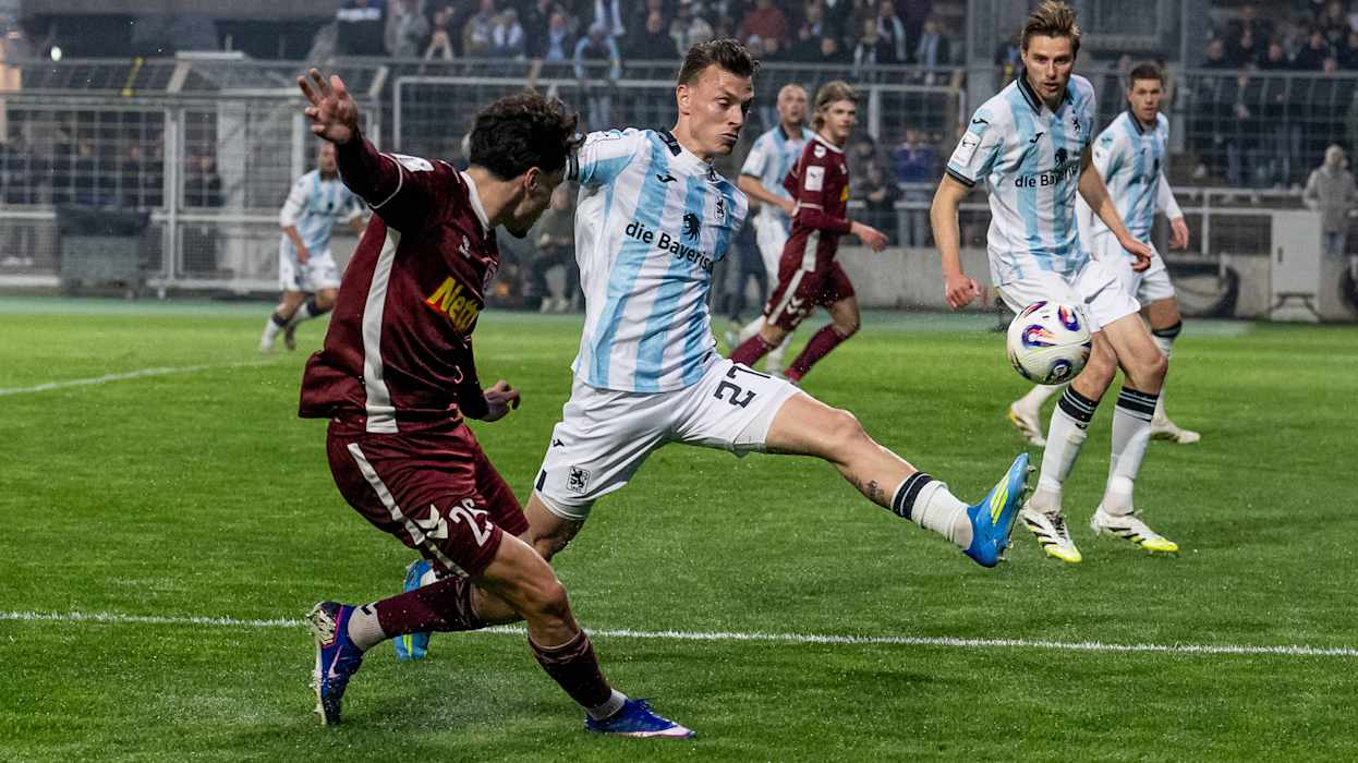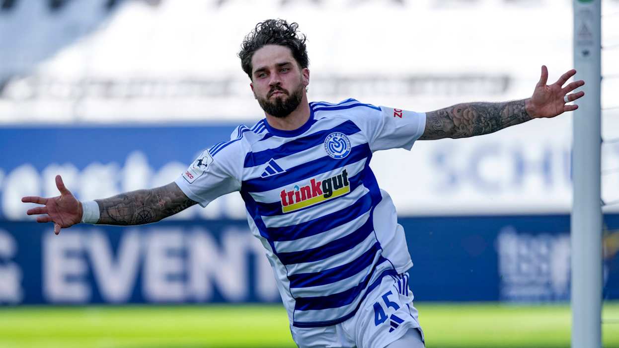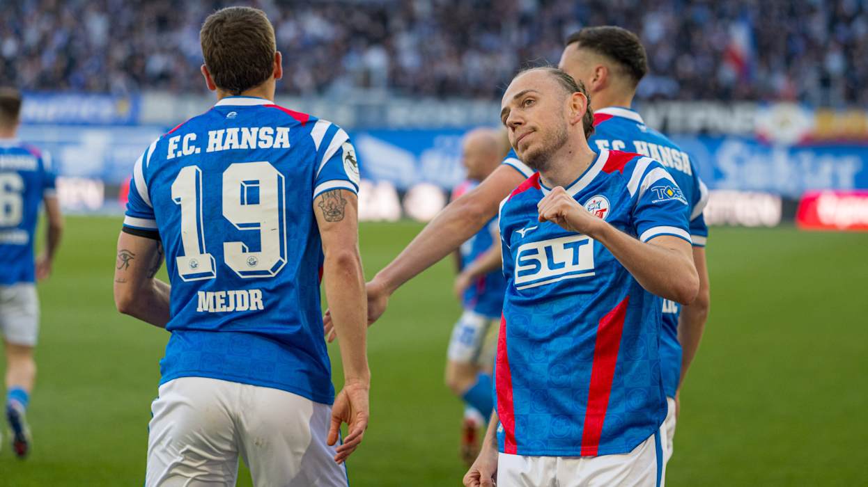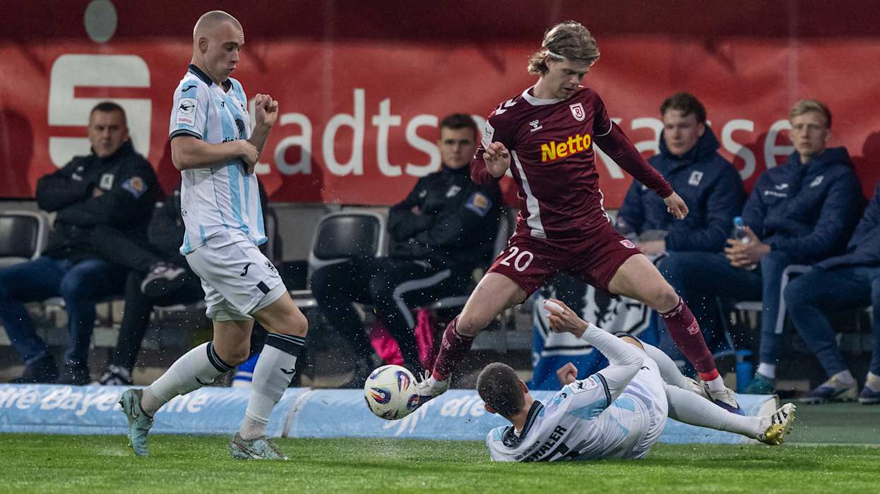 Der MSV Duisburg (4:1 bei Waldhof Mannheim) und Hansa Rostock (5:1 gegen den SSV Ulm 1846 Fußball) bleiben auch im Aufstiegsrennen, der SC Verl muss nach dem 1:1 beim FC Erzgebirge Aue abreißen lassen. DFB.de hat die Bilder des 33. Spieltags.
