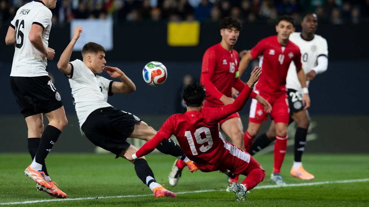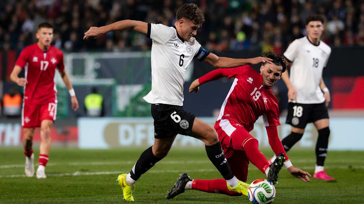 Die deutsche U 21-Nationalmannschaft hat den dritten Sieg im vierten Spiel der EM-Qualifikation eingefahren. Im Sportpark Ronhof in Fürth gewann das Team von Cheftrainer Antonio Di Salvo 6:0 (2:0) gegen Malta. Die Tore der Partie erzielten Tom Bischof (9., 63., 65.) Lennart Karl (37., 67.) und Muhammed Damar (86.).