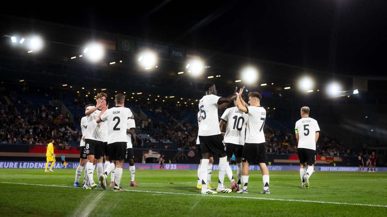 Die deutsche U 21-Nationalmannschaft hat einen optimalen Start die EM-Qualifikation hingelegt. Das Team von Nationaltrainer Antonio Di Salvo feierte vor 9019 Zuschauenden in Rostock einen 5:0 (2:0)-Heimsieg über die Auswahl Lettlands. Nelson Weiper (19.), Nicolo Tresoldi (44./50./57.) und Muhammed Damar (59.) trugen sich in die Torschützenliste ein.