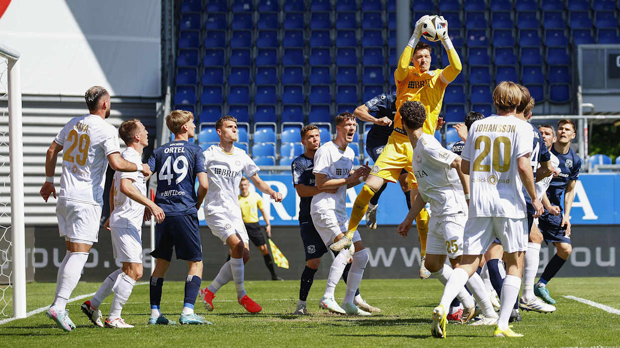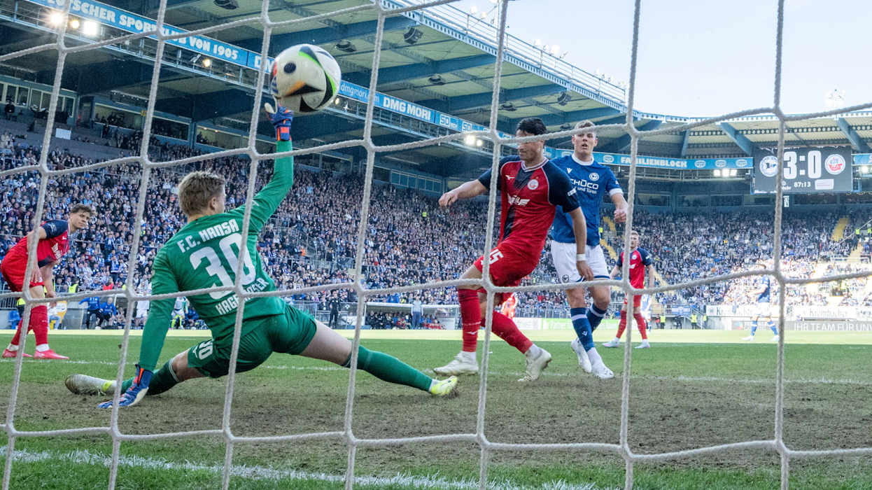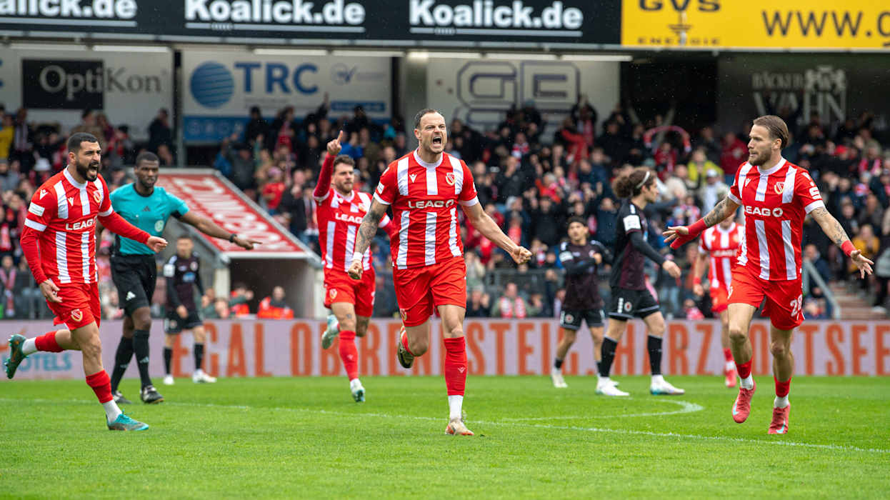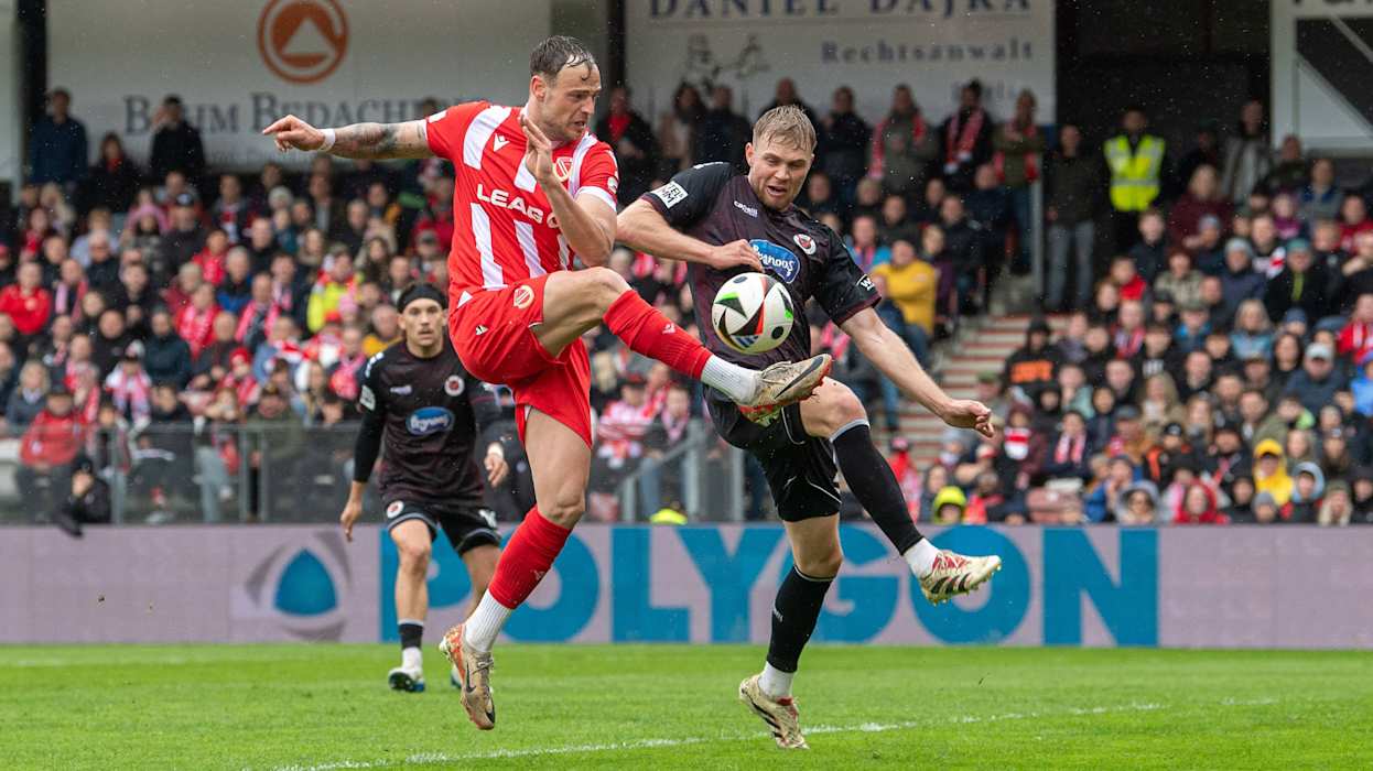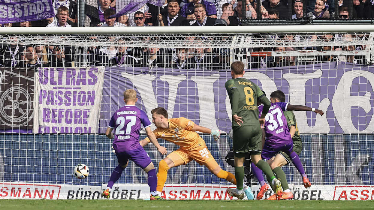 In der 3. Liga hat Dynamo Dresden das Topspiel gegen den 1. FC Saarbrücken 4:1 (2:1) gewonnen und steht weiter an der Tabellenspitze. Diese hatte zuvor für eine Nacht DFB-Pokalfinalist Arminia Bielfeld inne, der am Samstag Hansa Rostock 4:0 (3:0) besiegte. Hinter Dresden und Bielefeld klettert Energie Cottbus klettert dank eines 1:0 (0:0)-Heimsieg gegen Viktoria Köln auf den Relegationsplatz. Der VfL Osnabrück setzt sich gegen den FC Ingolstadt 1:0 (1:0) durch und sammelt somit wichtige Punkte im Abstiegskampf. Der FCI hingegen wartet nun seit vier Spielen auf einen Sieg. DFB.de hat die besten Bilder des 34. Spieltags.