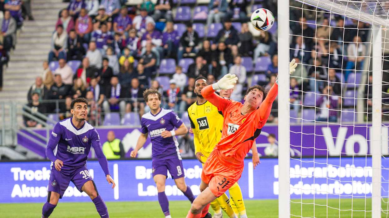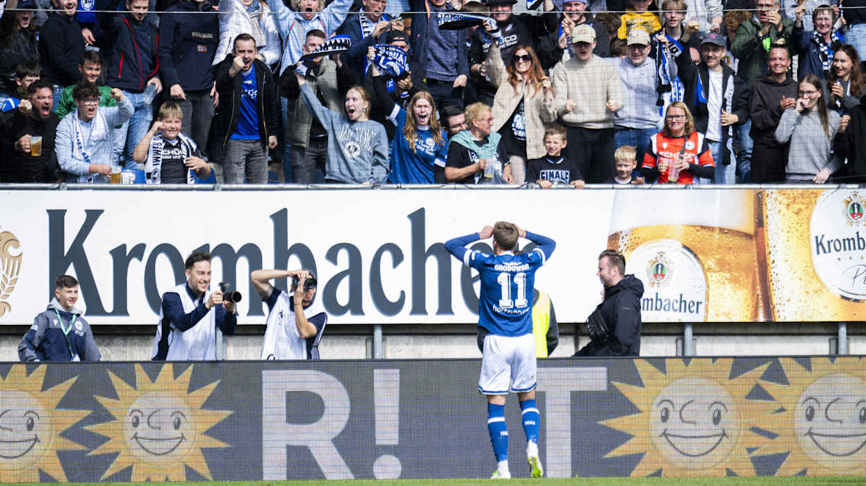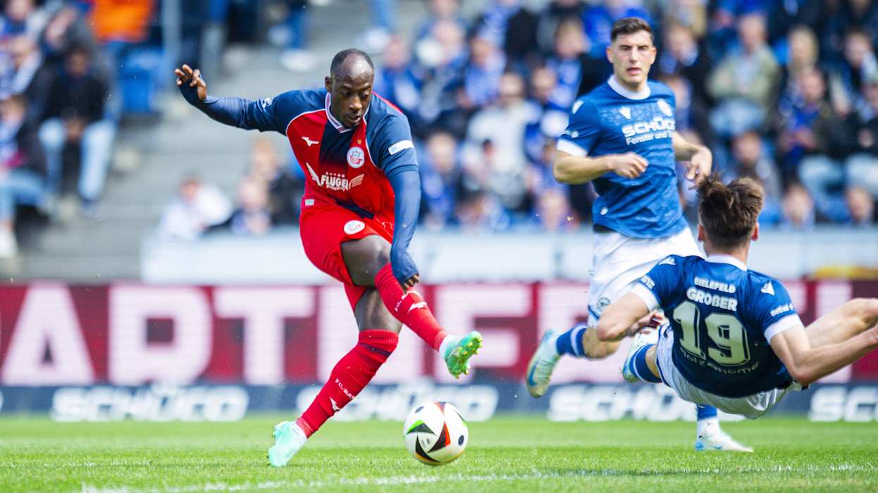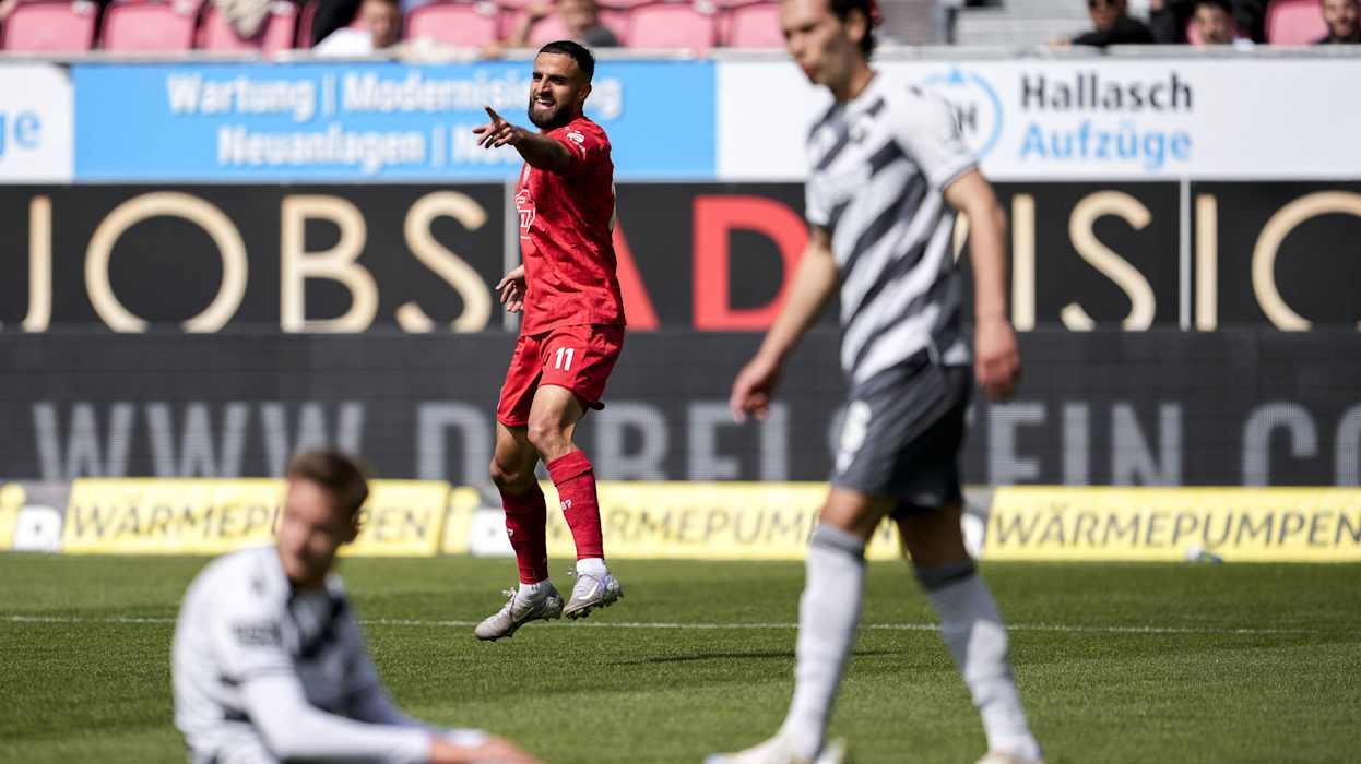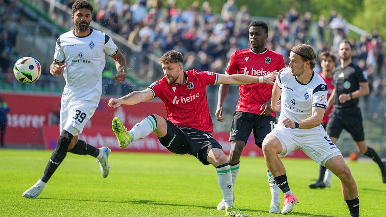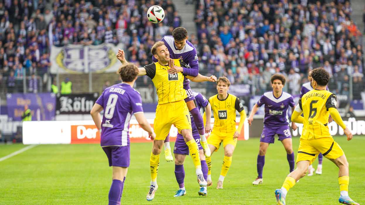 In der 3. Liga hat Dynamo Dresden das Topspiel gegen den 1. FC Saarbrücken 4:1 (2:1) gewonnen und steht weiter an der Tabellenspitze. Diese hatte zuvor für eine Nacht DFB-Pokalfinalist Arminia Bielfeld inne, der am Samstag Hansa Rostock 4:0 (3:0) besiegte. Hinter Dresden und Bielefeld klettert Energie Cottbus klettert dank eines 1:0 (0:0)-Heimsieg gegen Viktoria Köln auf den Relegationsplatz. Der VfL Osnabrück setzt sich gegen den FC Ingolstadt 1:0 (1:0) durch und sammelt somit wichtige Punkte im Abstiegskampf. Der FCI hingegen wartet nun seit vier Spielen auf einen Sieg. DFB.de hat die besten Bilder des 34. Spieltags.
