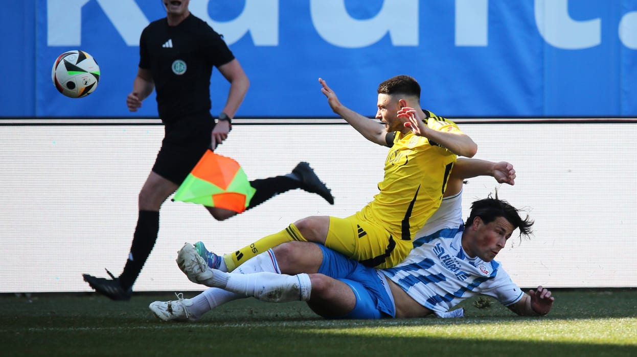 Energie Cottbus und Dynamo Dresden sind die Spieltagsgewinner im Aufstiegsrennen der 3. Liga. Weil der 1. FC Saarbrücken und Arminia Bielefeld Remis spielen, können Dresden und Cottbus durch ihre Siege den Abstand auf den Relegationsrang auf vier Punkte erhöhen. Der TSV 1860 München verpasst durch das 0:1 (0:1) beim VfL Osnabrück einen Befreiungsschlag im Abstiegskampf. Die Reserve des VfB Stuttgart feiert hingegen einen späten 2:1 (0:0)-Heimsieg gegen den SV Sandhausen und verlässt damit die Abstiegsränge. DFB.de hat die Bilder des 30. Spieltags.