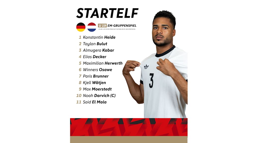 Die deutsche Startelf: Heide – Bulut, Decker, Herwerth, Kabar – Brunner, Osawe, Wätjen, El Mala – Moerstedt, Darvich (K).