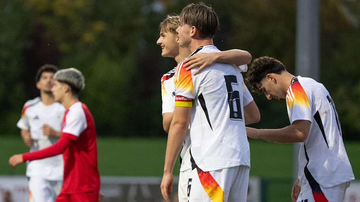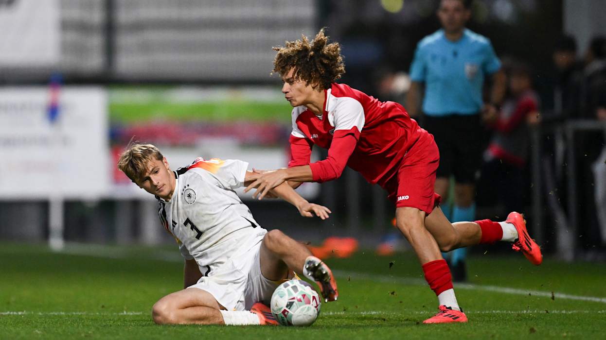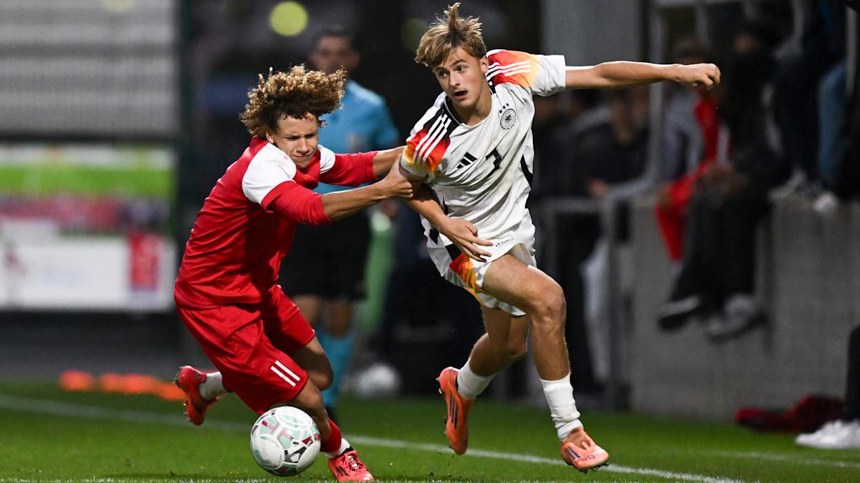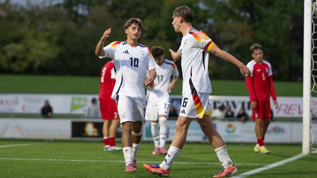 Die deutschen U 17-Junioren des Jahrgangs 2009 sind erfolgreich in die EM-Qualifikation gestartet: Im Auftaktspiel der ersten Qualifikationsrunde setzte sich die Mannschaft von Cheftrainer André Pawlak im Käerjenger Dribbel in Bascharage 4:0 (2:0) gegen Gastgeber Luxemburg durch. Am Samstag (ab 15 Uhr) geht es in der Dreiergruppe in Esch-sur-Alzette gegen Polen. Die beiden Gruppenersten qualifizieren sich für die zweite Qualifikationsrunde.
