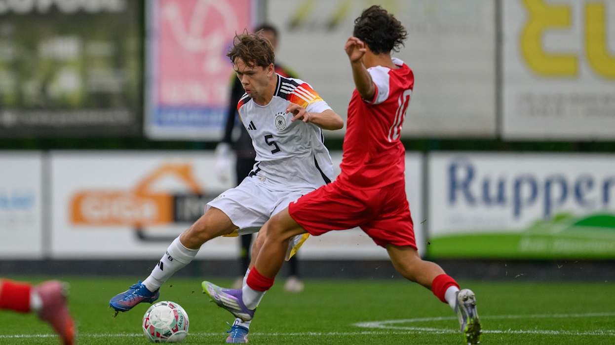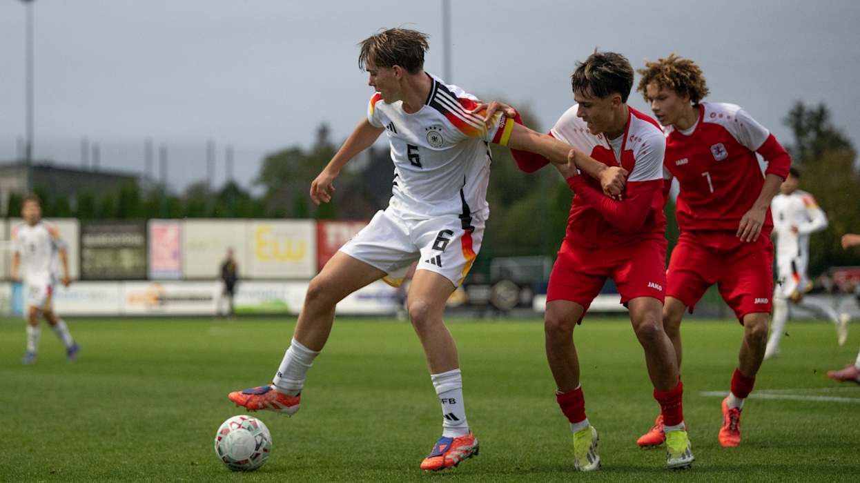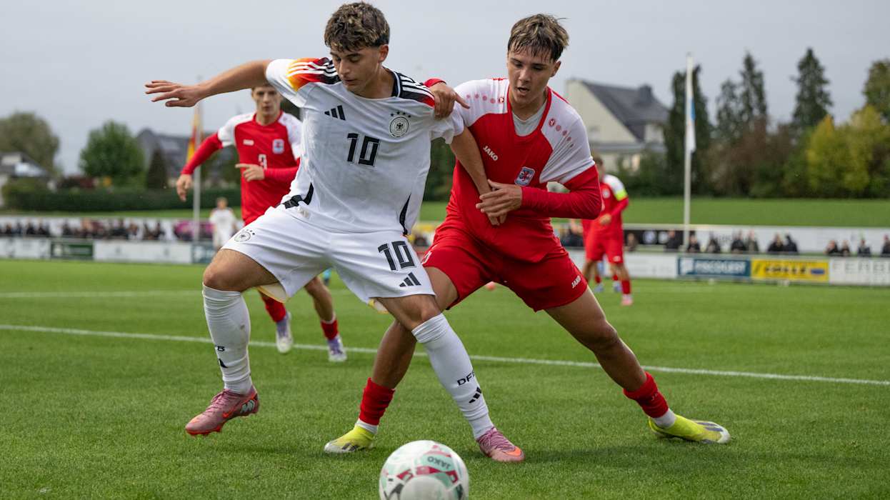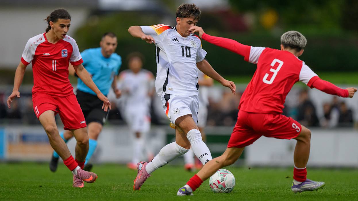 Die deutschen U 17-Junioren des Jahrgangs 2009 sind erfolgreich in die EM-Qualifikation gestartet: Im Auftaktspiel der ersten Qualifikationsrunde setzte sich die Mannschaft von Cheftrainer André Pawlak im Käerjenger Dribbel in Bascharage 4:0 (2:0) gegen Gastgeber Luxemburg durch. Am Samstag (ab 15 Uhr) geht es in der Dreiergruppe in Esch-sur-Alzette gegen Polen. Die beiden Gruppenersten qualifizieren sich für die zweite Qualifikationsrunde.