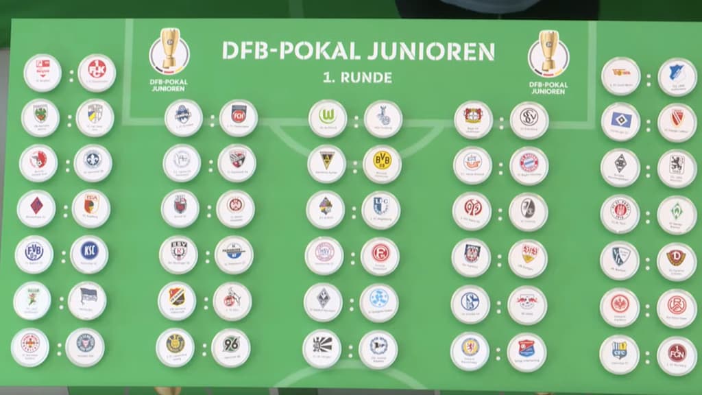 Mehr Mannschaften und ein neuer Modus: Die Paarungen der ersten Runde um den DFB-Pokal der Junioren der Saison 2025/2026 stehen fest. Ziehungsleiter Holger Bellinghoff, Vorsitzender des DFB-Jugendausschusses, und "Losfee" Hannes Wolf, Trainer der U 20-Nationalmannschaft und DFB-Direktor Nachwuchs, Trainer, Entwicklung, haben heute im DFB-Campus in Frankfurt die 32 Erstrundenpartien ausgelost.