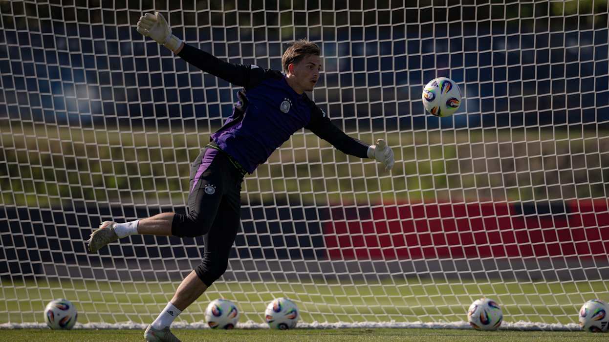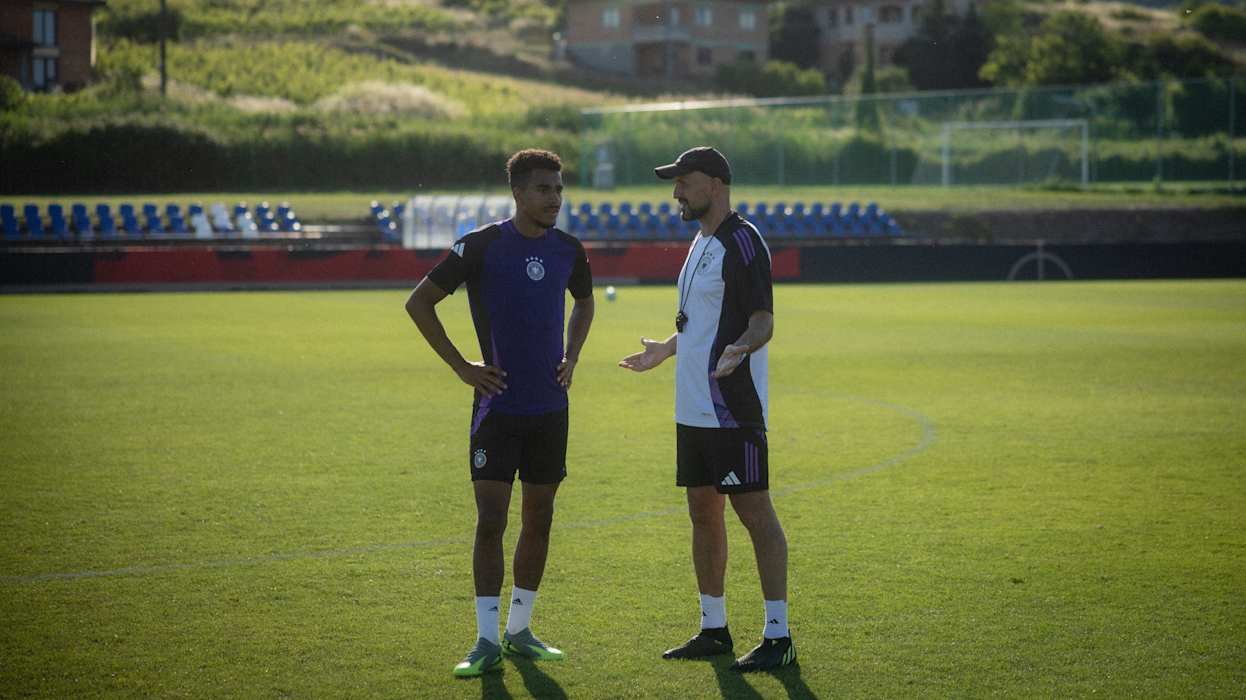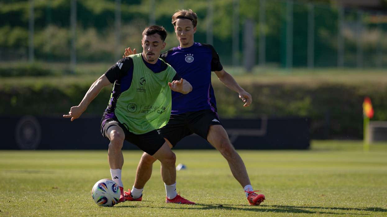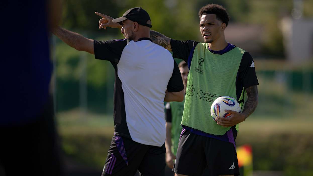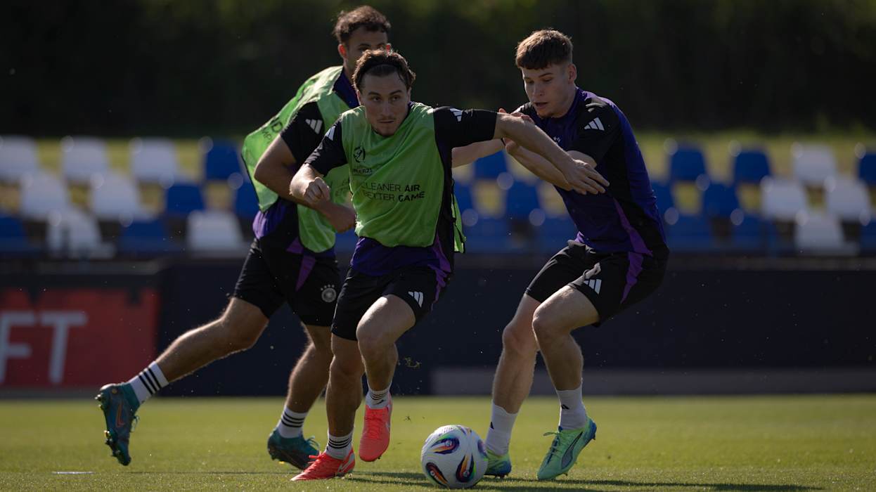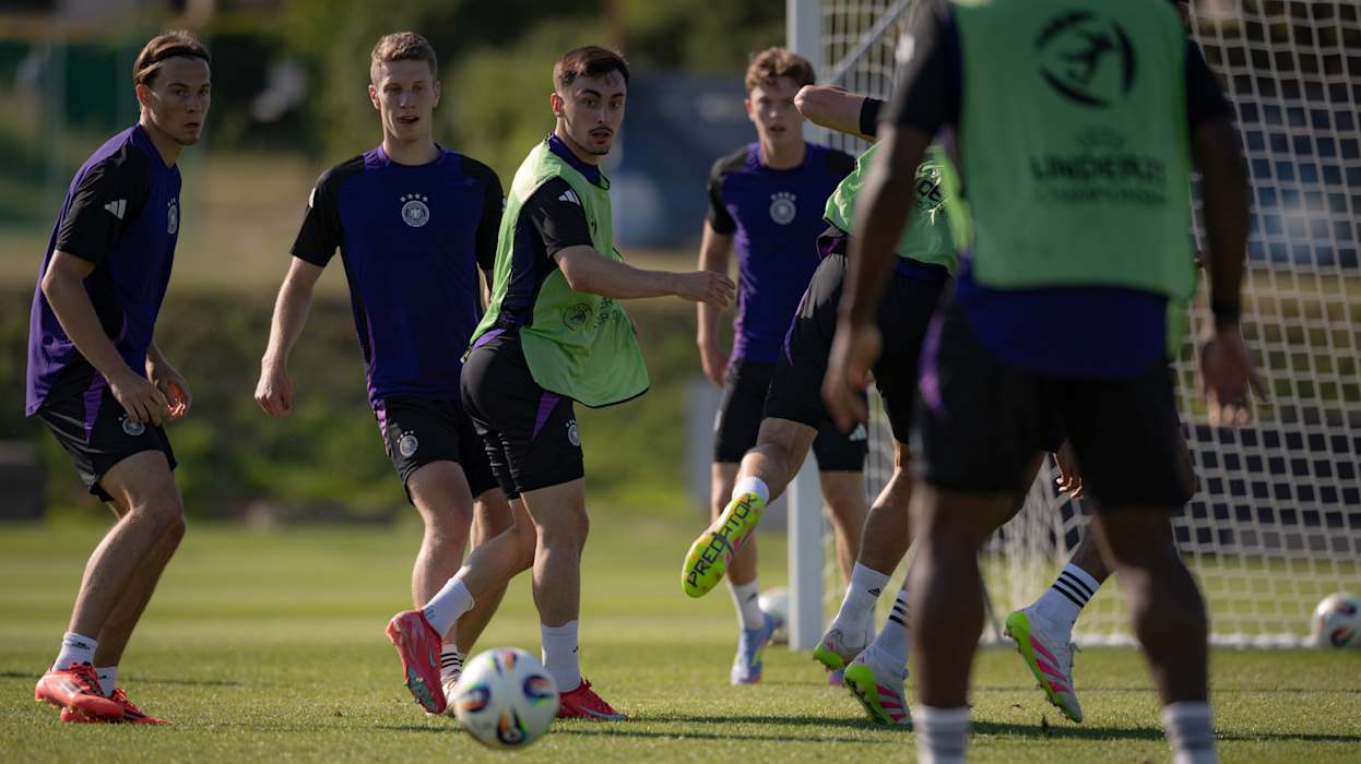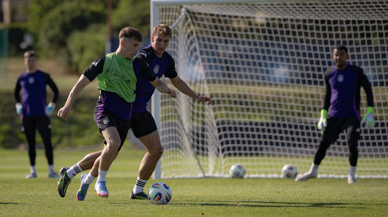 Morgen (ab 21 Uhr, live in SAT.1) will die deutsche U21-Nationalmannschaft bei der Europameisterschaft in der Slowakei den nächsten Schritt Richtung Titel gehen. Im Viertelfinale trifft die DFB-Auswahl in Dunajska Streda auf Italien. Beim Abschlusstraining in Modra bereiten sich Brown, Knauff und Co. unter Leitung von Trainer Antonio Di Salvo auf den Klassiker gegen die Squadra Azzurra vor. DFB.de präsentiert die besten Bilder der Einheit.