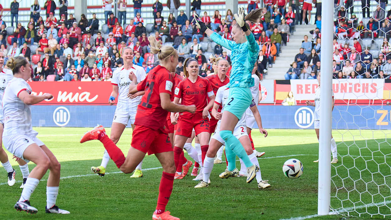 Der FC Bayern München krönt sich am 20. Spieltag zum dritten Mal in Folge Meister der Google Pixel Frauen-Bundesliga dank eines 3:1-Heimsieges gegen den SC Freiburg. Eintracht Frankfurt bleibt auf Kurs in Richtung internationales Geschäft dank eines ungefährdeten 4:0-Auswärtserfolgs beim 1. FC Köln.Am anderen Tabellenende besiegelt Bayer 04 Leverkusen mit einem 3:1-Sieg den erneuten Abstieg des sechsmaligen Deutschen Meisters 1. FFC Turbine Potsdam aus der Liga. DFB.de hat die besten Bilder des 20. Spieltags.