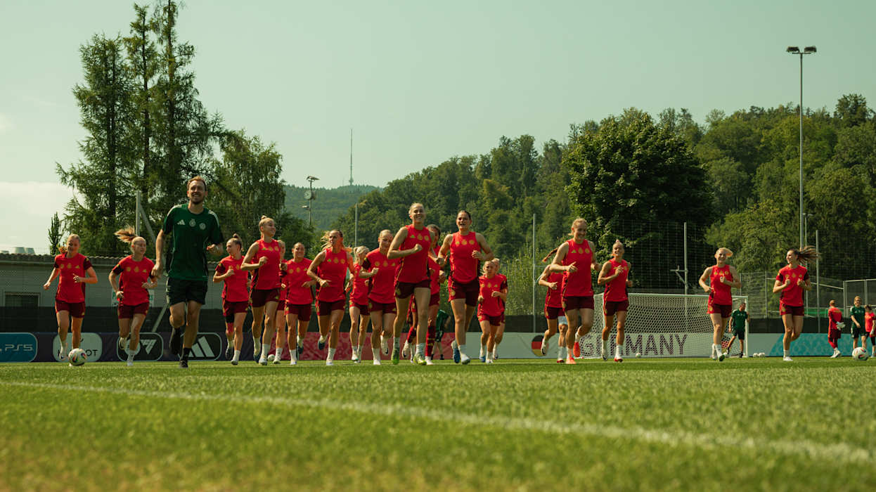 Die Vorbereitung auf die UEFA Women's EURO geht in die heiße Phase: Am Freitag (ab 21 Uhr, live in der ARD) trifft die deutsche Frauen-Nationalmannschaft zum Turnierauftakt auf Polen. Nach dem Einzug in ihr Züricher EM-Quartier am Montag folgte nun am heutigen Dienstagmorgen die erste Trainingseinheit der DFB-Frauen auf Schweizer Boden. Zuvor wurde auf dem Trainingsplatz bereits das offizielle EM-Mannschaftsfoto des deutschen EM-Kaders geschossen. DFB.de zeigt die besten Bilder in einer Galerie.