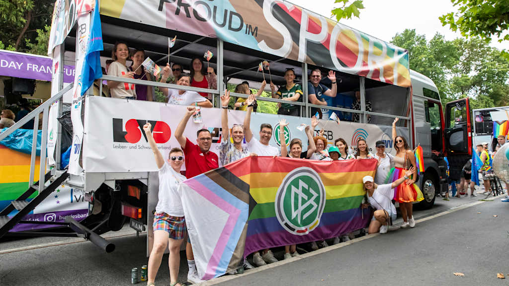 Am 19. Juli wird Frankfurt wieder bunt, laut und sichtbar: Unter dem diesjährigen Motto "Nie wieder still – Frankfurt ist #laut" setzt sich der DFB beim diesjährigen Christopher Street Day (CSD) gemeinsam mit der Deutschen Fußball Liga (DFL), dem Deutschen Olympischen Sportbund (DOSB), der Deutschen Sportjugend (dsj) und der Sportjugend Hessen aktiv für die Rechte der LGBTQ*-Community ein - laut, friedlich und solidarisch. Mit jeder Menge Musik, Lebensfreude und einer klaren Botschaft für Vielfalt, Respekt und Zusammenhalt wird die Stadt zum Leuchten gebracht.
