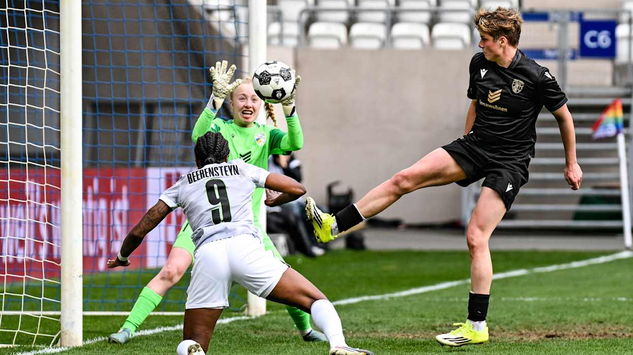 Die Gastgeberinnen versuchten von Beginn an, hinten sicher zu stehen und auf ihre Chancen zu lauern. Das gelang den Thüringerinnen, Elena Mühlemann gab den ersten Torschuss des Spiels ab, ohne Stina Johannes im VfL-Tor vor große Probleme zu stellen (9.). Auf der anderen Seite traf Janina Minge eine Hereingabe von Sarai Linder nicht richtig (12.). Jena gestaltete eine Anfangsphase auf Augenhöhe, in der die klaren Abschlussmöglichkeiten aber fehlten.