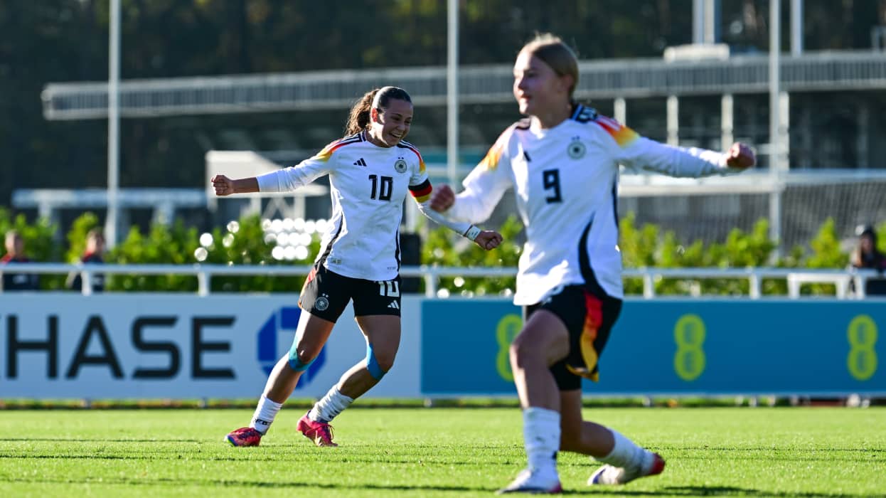 Die deutschen U 15-Juniorinnen haben den Auftakt beim UEFA-Entwicklungsturnier im englischen Burton-on-Trent klar für sich entschieden. Gegen die Türkei gewann die Mannschaft von DFB-Trainerin Bettina Wiegmann 9:0 (4:0). Vor der Pause erzielten Luisa Muthmann (2., 41.), Mia Deckers (5.) und Juliane Sabrowski (45.+1) die Treffer für die DFB-Auswahl. Nach der Halbzeit und vielen Wechseln auf deutscher Seite trafen Thea Kraus (49., 67., 90.+1), Meva Pekin (60.) und Hana Hashani (65.) zum Endstand.