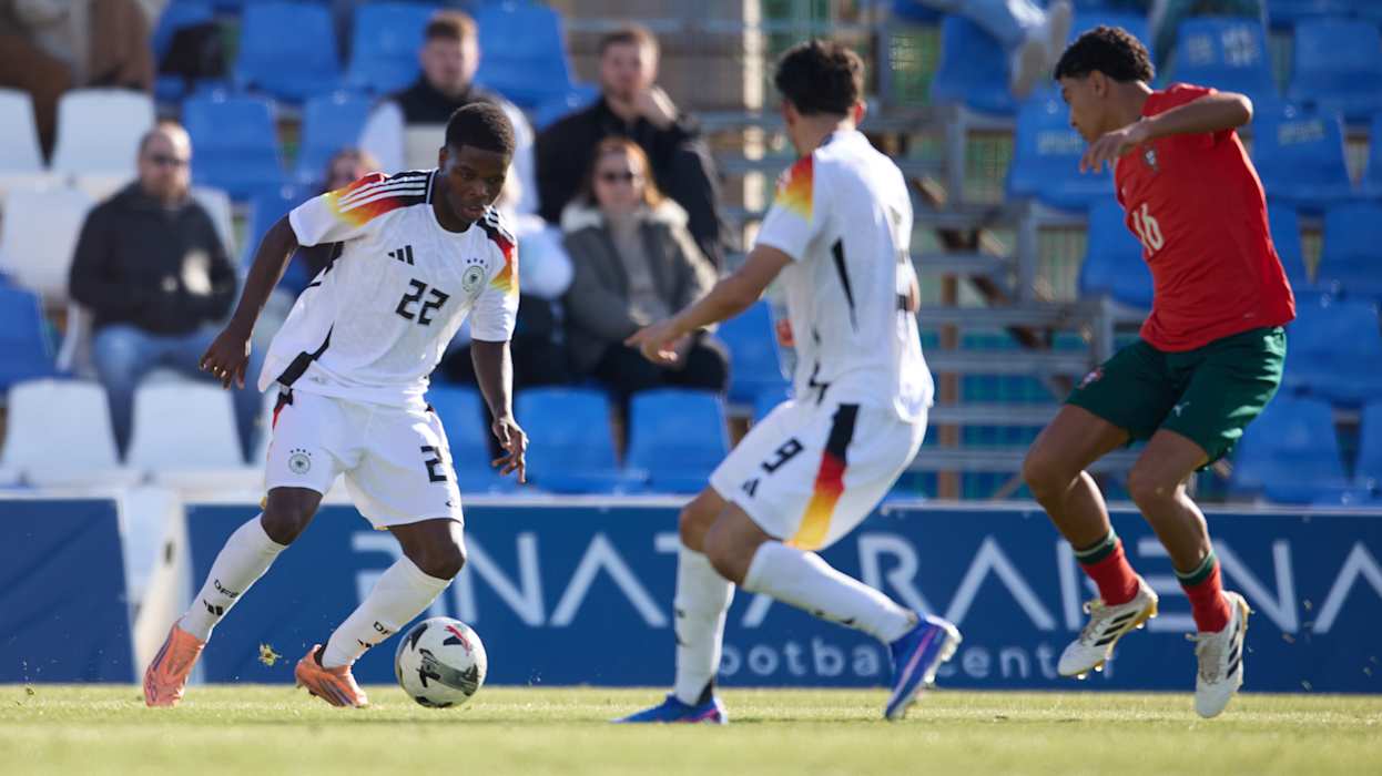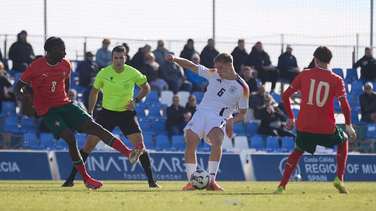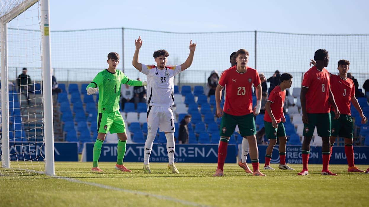 Die deutsche U 17-Junioren-Nationalmannschaft hat das erste von zwei Länderspielen gegen Portugal knapp verloren. Die Mannschaft von DFB-Trainer André Pawlak unterlag in der Pinatar Arena im spanischen San Pedro del Pinatar 1:2 (0:2). Estefanio Domingos erzielte für die portugiesische Auswahl vor der Halbzeitpause ( 18., 36.) beide Treffer, Louis Lemke (83.) gelang kurz vor dem Abpfiff noch der Anschlusstreffer. Kurz zuvor hatte der Portugiese Isaac da Silva die Rote Karte wegen einer Notbremse gesehen (82.). 112 Zuschauende verfolgten die Partie live vor Ort.