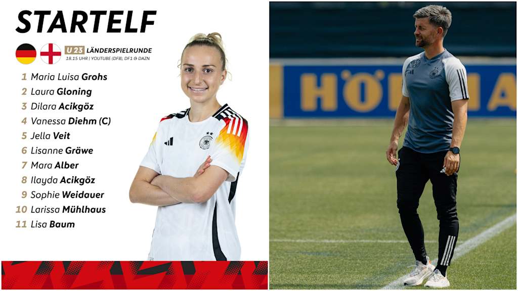 Vanessa Diehm von der TSG Hoffenheim führt die deutsche U 23-Frauen-Nationalmannschaft zum Auftakt der Länderspielrunde gegen England um 18.15 Uhr (live bei YouTube, DF1 und DAZN) in Fulda als Kapitänin aufs Feld. In der Startelf vertraut DFB-Trainer Michael Urbansky in seinem ersten Spiel als verantwortlicher U 23-Coach zudem auf gleich vier Debütantinnen. Maria Luisa Grohs (Bayern München), die Zwillinge Dilara und Ilayda Acikgöz (beide Eintracht Frankfurt) und Lisa Baum (RB Leipzig) feiern im Stadion der Stadt Fulda ihre Premieren im U 23-Trikot.
