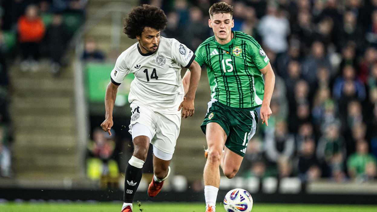 Die Uhr tickte zugunsten der DFB-Auswahl, aber Nordirland blieb weiter gefährlich. Erst verfehlte Galbraith einmal mehr aus der Distanz nur knapp (85.). Drei Minuten später brachte Callum Marshall das deutsche Tor aus acht Metern in die Bredouille und zwang Baumann zu einem weiteren starken Reflex (88.). Doch das DFB-Team rettete den knappen Vorsprung über die Zeit.