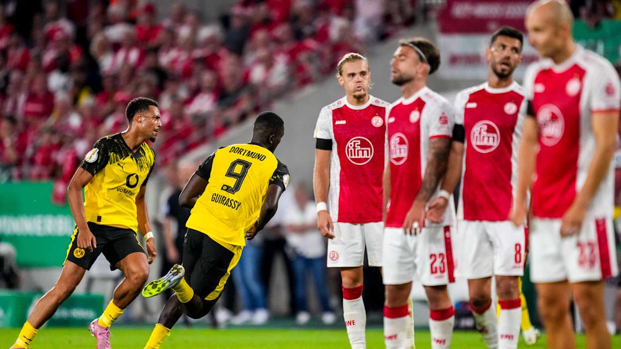 In der ersten Runde um den DFB-Pokal 2025/2026 sind 30 der 32 Partien gespielt - bisher gab es zwei Überraschungen. Die größte gelang Regionalligist FV Illertissen mit dem 6:5 im Elfmeterschießen gegen Zweitligist 1. FC Nürnberg. Auch Energie Cottbus aus der 3. Liga setzte sich gegen einen Zweitligisten durch - Hannover 96. Werder Bremen schied durch das 0:1 bei Arminia Bielefeld als einziger Bundesligist aus. Andere Favoriten machten es spannend: Der FC St. Pauli gewann erst im Elfmeterschießen bei Eintracht Norderstedt, der 1. FC Köln drehte das Spiel bei Jahn Regensburg erst tief in der Nachspielzeit. FK Pirmasens und Blau-Weiß Lohne forderten den Hamburger SV und Schalke 04 bis in die Verlängerung. DFB.de zeigt die besten Bilder aus Runde eins.