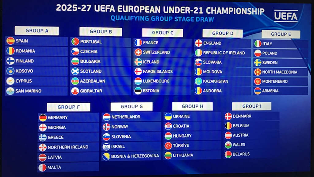 In der Qualifikation zur Europameisterschaft 2027 in Albanien und Serbien trifft die deutsche U 21-Nationalmannschaft in Gruppe F auf Georgien, Griechenland, Nordirland, Lettland und Malta. Das ist das Ergebnis der heutigen Auslosung in der UEFA-Zentrale im schweizerischen Nyon.