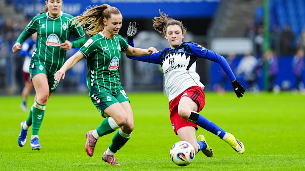 Ohne Siegerinnen endete das Nordderby in der Google Pixel Frauen-Bundesliga. Aufsteiger Hamburger SV und der SV Werder Bremen trennten sich am 19. Spieltag nach einem intensiven Duell 1:1 (1:0). Während der HSV den Abstand zu einem Abstiegsplatz zumindest vorerst auf drei Punkte vergrößerte, verpassten die Gäste durch ihr drittes Remis nacheinander den möglichen Sprung auf Rang drei.