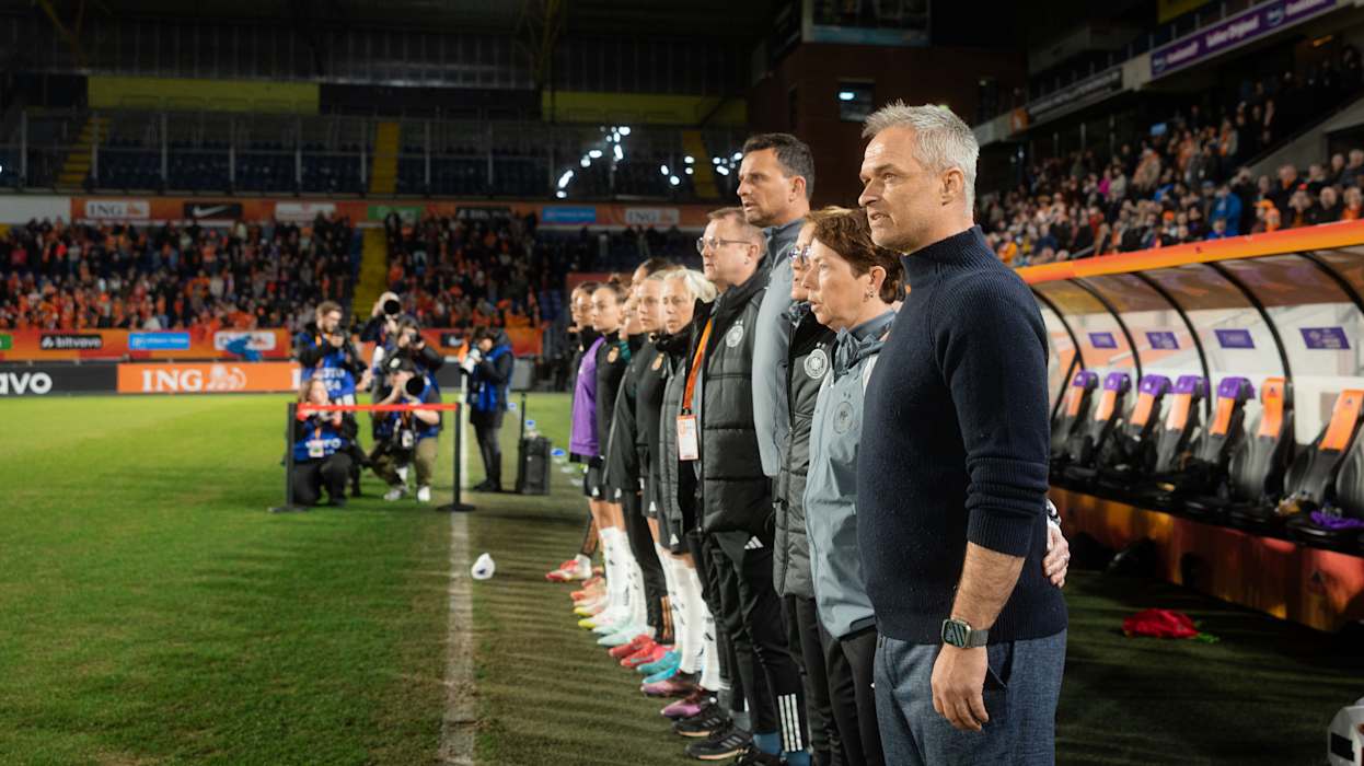 Im Anschluss schnürten die Gastgeberinnen die deutsche Auswahl in der eigenen Hälfte ein und kamen in der 17. Minute erneut zu einer guten Tormöglichkeit aus etwa 15 Metern. Das Wück-Team brauchte einige Minuten, um wieder ins Spiel und offensive Lösungen zu finden. In Minute 30 kreierte Deutschland die bislang beste Chance, als Minge Meter nach vorne machte und Bühl auf die rechte Seite schickte. Die legte den Ball clever in den Rücken der Verteidigerinnen, wo Freigang sich um ihre Gegenspielerin drehte und aus zehn Metern, aber in Rückenlage über die Latte schoss. Doch daraus schöpfte die deutsche Mannschaft Selbstvertrauen und war wieder präsenter in der niederländischen Hälfte.
