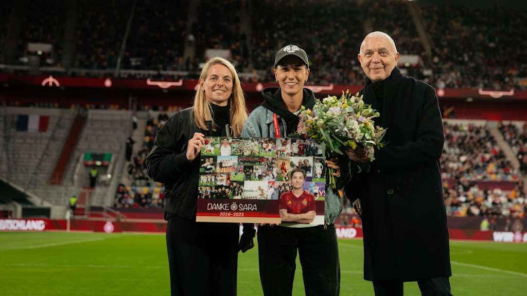 Sara Doorsoun wurde heute im Rahmen des UEFA Women’s Nations League-Spiels gegen Frankreich in der Merkur Spiel-Arena in Düsseldorf offiziell verabschiedet. Doorsoun, die in 59 Länderspielen für die A-Nationalmannschaft ein Tor erzielen konnte, hatte ihr Karriereende in der Nationalmannschaft im Juni dieses Jahres angekündigt.