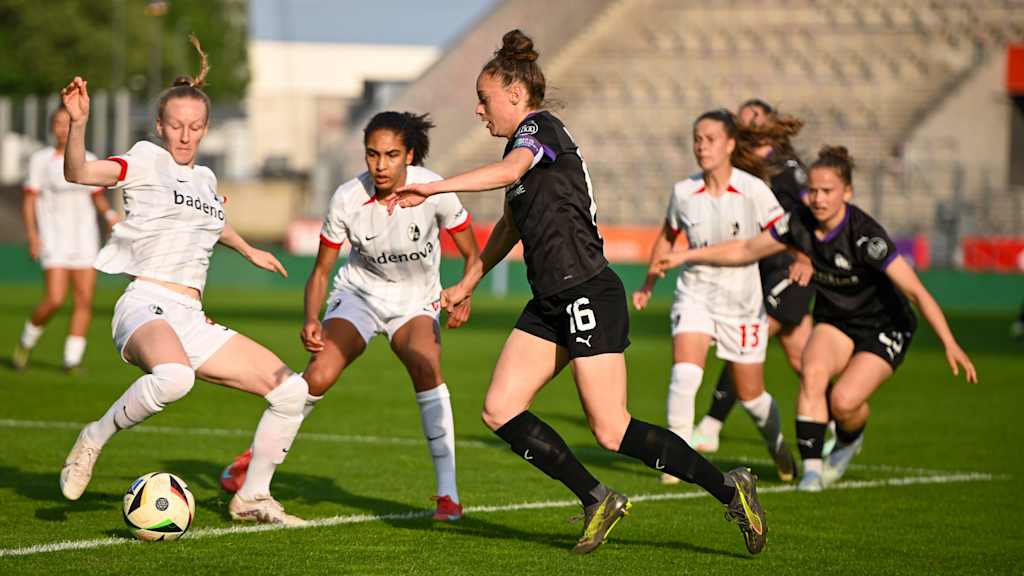 Vor 2224 Zuschauer*innen im Stadion an der Hafenstraße lieferten sich die beiden Mannschaften zumindest in der zweiten Halbzeit sehr unterhaltsames Duell mit einer Reihe guter Tormöglichkeiten. Am nächsten dran war Freiburgs Einwechselspielerin Selina Vobian, deren Schuss aus 20 Metern an die Latte prallte.