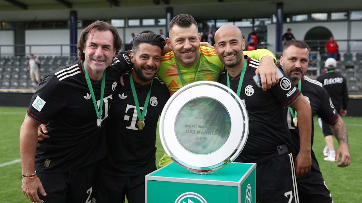 Bei den Männern sicherte sich der FC Bayern München den Titel bei der Ü 32-Meisterschaft. Mit einem 2:1-Sieg gegen den 1. FC Wunstorf und einem 4:2-Erfolg gegen die SpVgg Quierschied machten die Münchner den Triumph in Berlin perfekt. TuS Stenern, das am Sonntag noch mit 1:4 gegen Wunstorf unterlag, musste sich mit Rang zwei begnügen. Wunstorf selbst belegte Platz drei, gefolgt vom BSV Al-Dersimspor.