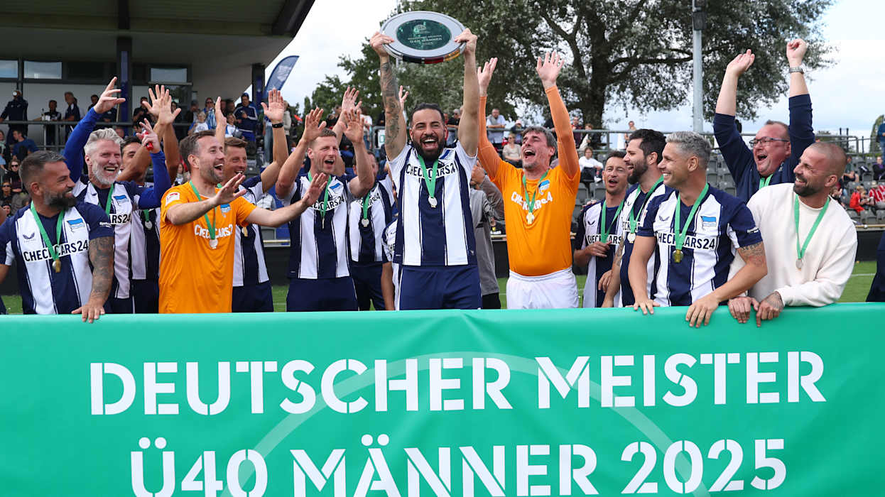 Auch der neue Meister bei den Ü 40-Männern steht fest: Hertha BSC setzte sich souverän durch. Die Berliner gewannen am Sonntag sowohl gegen den 1. FC Nürnberg als auch gegen den SC Condor Hamburg jeweils mit 2:1. Bereits am Vortag hatte Hertha beide Spiele für sich entschieden und damit die Konkurrenz klar hinter sich gelassen. Nürnberg, Westfalia Herne und die SG Mittelmosel-Leiwen folgten auf den weiteren Plätzen.