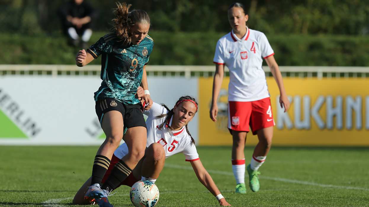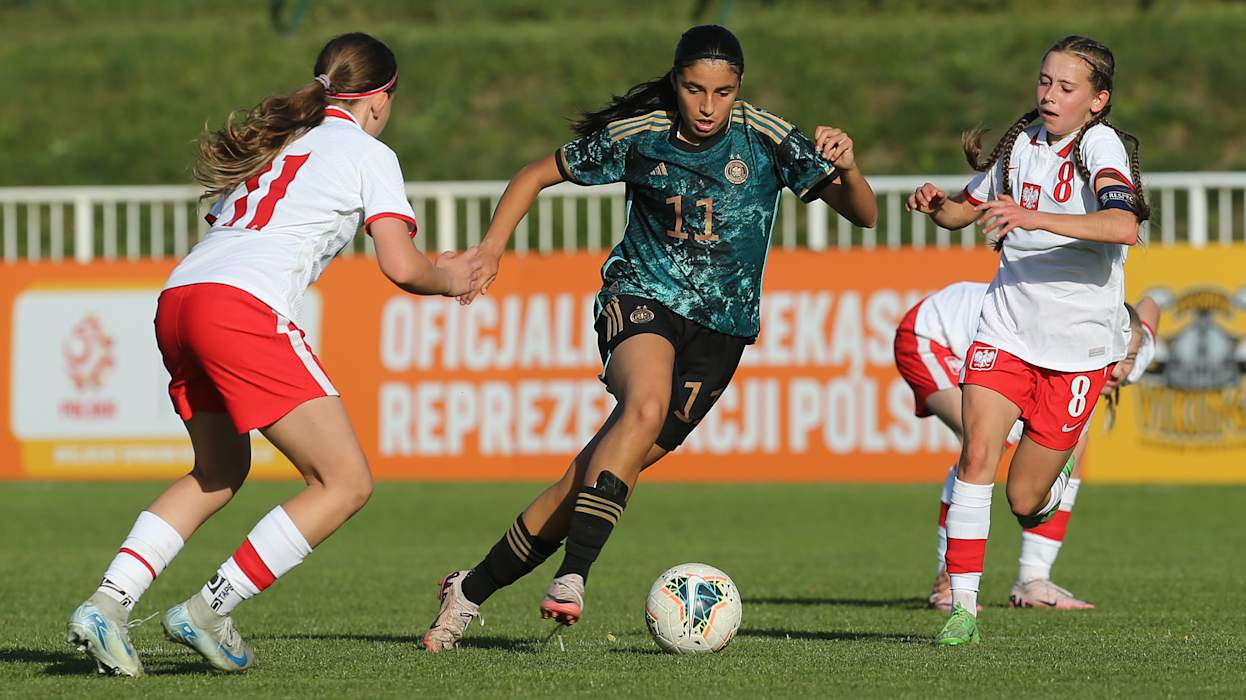 In einem turbulenten Spiel in Rzepin trennte sich die deutsche U15-Nationalmannschaft von Trainerin Bettina Wiegmann von Polen mit einem 2:2-Unentschieden. Dabei erzielt die deutsche Elf zwei Treffer nach gutem Gegenpressing und musste über 45 Minuten in Unterzahl spielen.