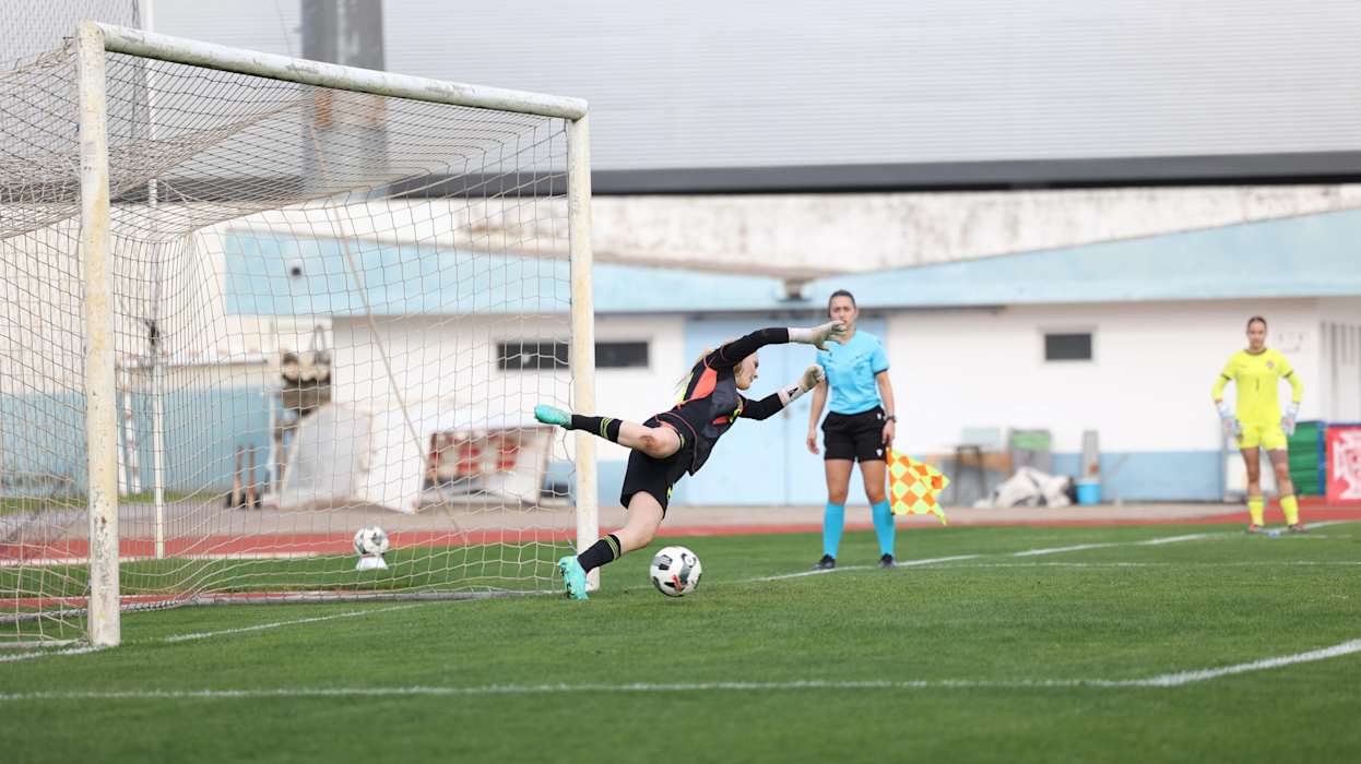 Im Municipal de Vila Real begegneten sich beide Mannschaften von Beginn an auf Augenhöhe. Die Portugiesinnen präsentierten sich offensiv kreativ, spielten schnell und mit viel Zug in Richtung Tor. Bereits in der 7. Spielminute war Torhüterin Mara Erkens erstmals gefordert, als sie einen Schuss von Sara Moreira aus halblinker Position parierte. Nach einem langen Ball der portugiesischen Torfrau, der durch die deutsche Abwehrkette rutschte, stand Iara Saraiva jedoch wenig später frei vor Erkens und schob den Ball zum 0:1 für Portugal über die Linie (12.). Die Antwort der DFB-Auswahl folgte prompt: Anni Kuhl wurde im Strafraum zu Fall gebracht, den fälligen Elfmeter verwandelte Josefine Schmitz sicher zum 1:1 (17.).