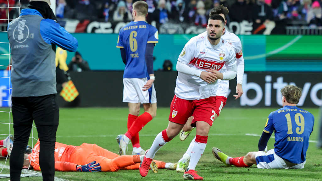 Titelverteidiger VfB Stuttgart steht im DFB-Pokal zum dritten Mal in den vergangenen vier Jahren im Halbfinale. Das Team von Trainer Sebastian Hoeneß setzte sich im Viertelfinale bei Zweitligist Holstein Kiel nach torloser erster Halbzeit letztendlich deutlich mit 3:0 durch, obwohl sich der Favorit lange schwertat. Die Gastgeber verpassten in einer am Ende engen Partie den dritten Sprung unter die besten vier Pokalteams nach zuvor 1941 und 2021.