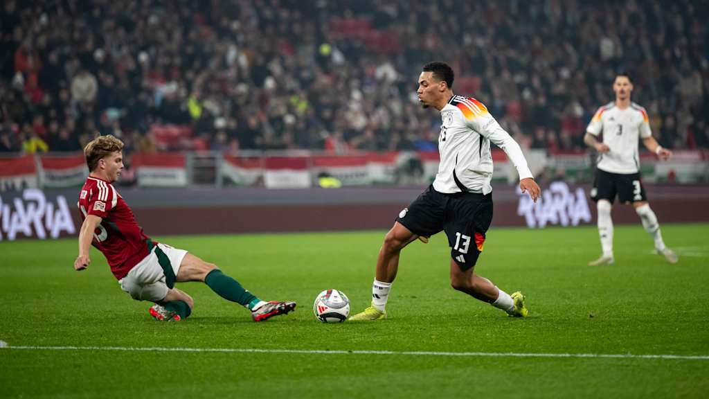 Die deutsche Nationalmannschaft hat beim 1:1 (0:0) gegen Gastgeber Ungarn im letzten Gruppenspiel der UEFA Nations League einen Sieg zum Jahresabschluss nur knapp verpasst. Felix Nmecha erzielte die Führung für das DFB-Team, doch Dominik Szoboszlai traf nach VAR-Check mit der letzten Aktion in der Nachspielzeit per Handelfmeter zum Ausgleich. DFB.de zeigt die Highlights aus Budapest im YouTube-Video.