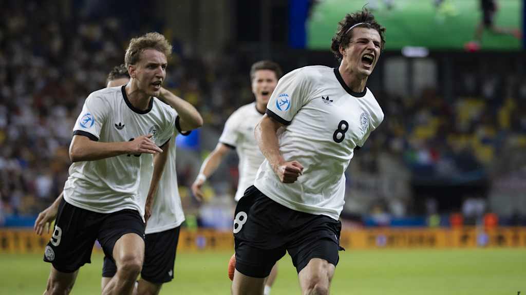 Drama pur in Dunajska Streda: Die deutsche U 21-Nationalmannschaft liegt im Viertelfinale der Europameisterschaft in der Slowakei gegen Italien zunächst zurück, dreht dann die Partie - doch Italien kommt in doppelter Unterzahl zurück und erzwingt die Verlängerung. Dort hat das deutsche Team von DFB-Trainer Antonio Di Salvo den längeren Atem und zieht dank Merlin Röhls Treffer in der 117. Minute ins EM-Halbfinale am Mittwoch (ab 21 Uhr, live in SAT.1, auf Joyn und ran.de) gegen Frankreich ein. DFB.de zeigt die Highlights vom 3:2 gegen Italien im YouTube-Video.