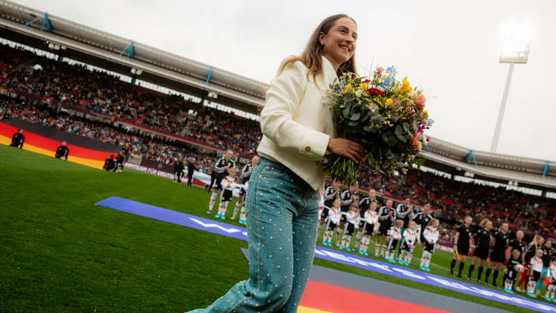 Vor dem Österreich-Spiel in Nürnberg ist Sara Däbritz offiziell verabschiedet worden. Bernd Neuendorf und Nia Künzer ehrten die 31-Jährige für ihre lange und erfolgreiche Karriere in der DFB-Auswahl.