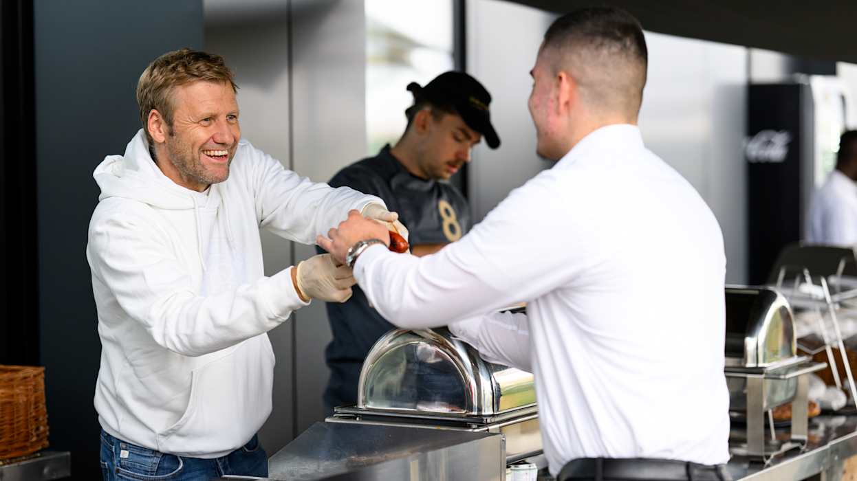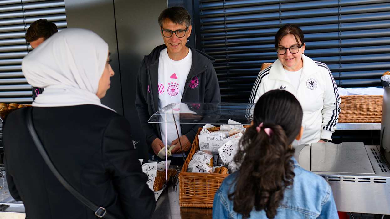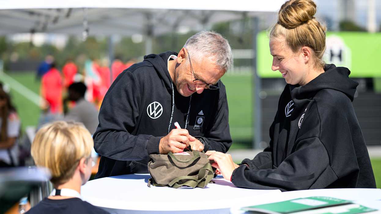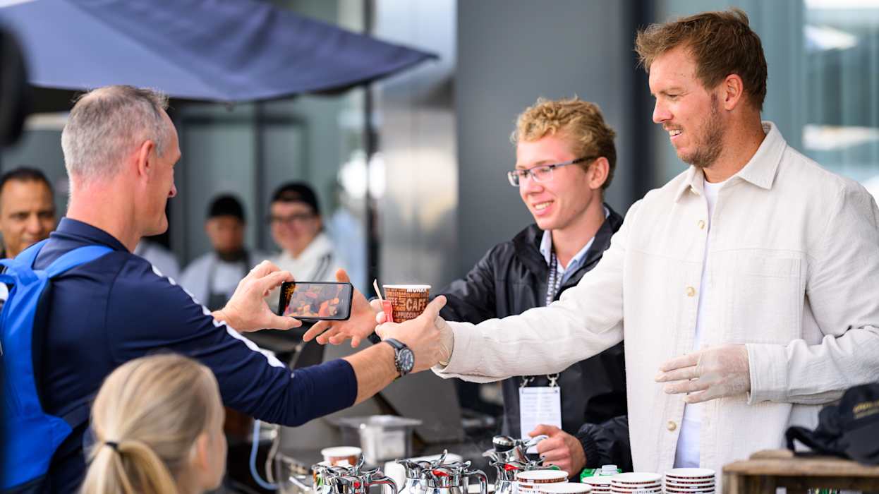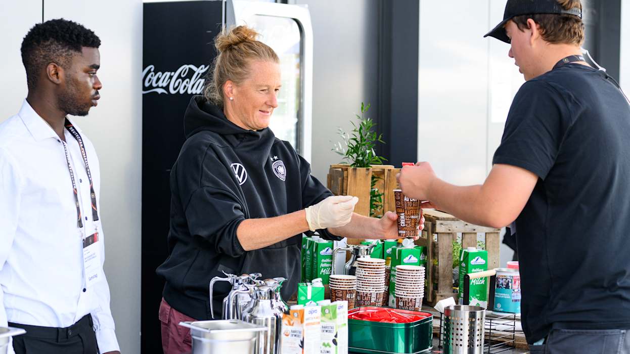 Zwischendurch waren viel Prominente an den Getränke- und Essensständen unterwegs: Neben Julian Nagelsmann auch die Generalsekretärin Heike Ullrich, Maren Meinert, Co-Trainerin der Frauen-Nationalmannschaft, sowie viele weitere mehr.
