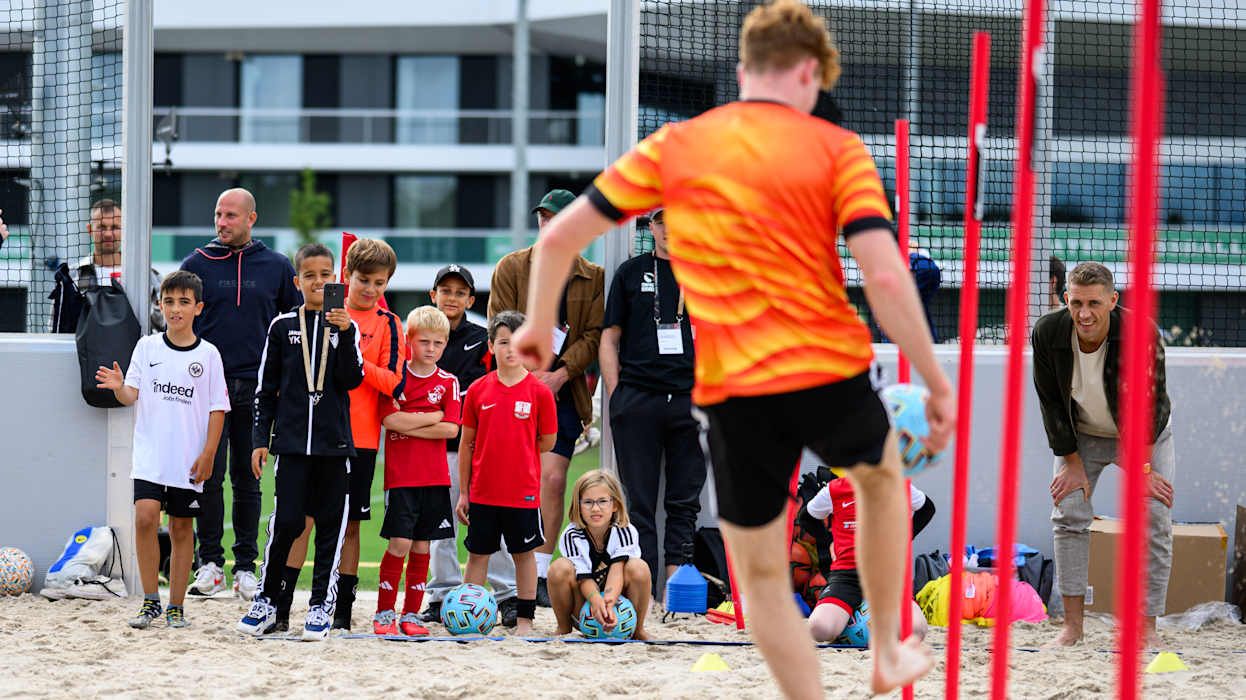 Dabei begann der Samstag mit einer Überraschung: Bundestrainer Julian Nagelsmann kam zu Besuch und beantwortete in einer Kinder-Pressekonferenz die Fragen unzähliger junger Fußballerinnen und Fußballer. Ab 12.30 Uhr startete auch der Spielbetrieb auf dem Campus: Nach der Partie zwischen den Ü35-Herren der Spvgg Eltville und FC Cleeberg traf die TS Ober-Roden auf die SG Rot-Weiss Frankfurt II in der Verbandsliga-Süd der C-Junioren. Zeitgleich gab es viele Mitmachangebote, bei denen Interessierte einen Leistungstest absolvieren oder sich im Beachsoccer oder Blindenfußball versuchen konnten.