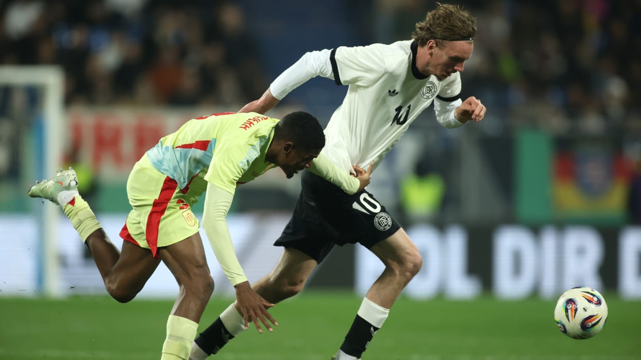 Zum Matchwinner mit drei Toren avancierte Nick Woltemade. Der überragende Stuttgarter brachte Deutschland nach nicht einmal 180 Sekunden sehr sehenswert in Führung und trat auch in der Folgezeit als Dreh- und Angelpunkt in Erscheinung. Mit der ersten spanischen Chance der Partie glich Gabri Veiga noch inmitten der ersten Halbzeit aus (19.), doch Woltemade stellte erst mit einem Schuss aus der Drehung den knappen Vorsprung wieder her (56.) und ließ dann noch per Kopf den dritten Treffer folgen (79.).