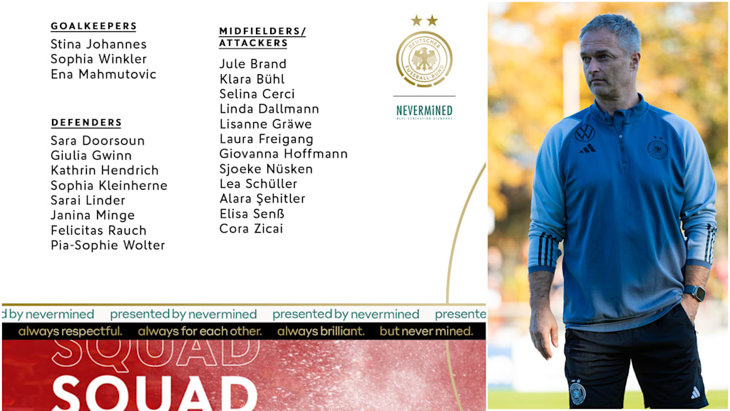 The team will meet in Stuttgart on Monday in order to prepare for their upcoming friendly against next year's EURO hosts Switzerland at the Stadion Letzigrund in Zurich on Friday, 29th November (20:00 CET). Their final home game of the year will then see Germany host Italy at the Vonovia Ruhrstadion in Bochum on Monday, 2nd December (20:30 CET).